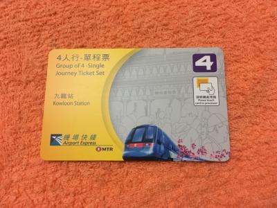 エアポートエクスプレス九龍駅から空港までは、片道のグループ用乗車券を利用しました。2人、3人、4人グループ用のものがあります。