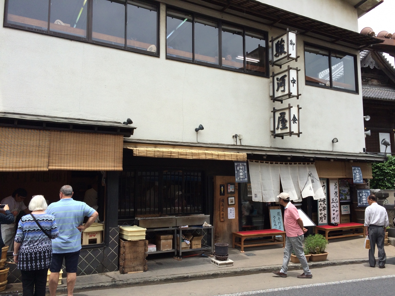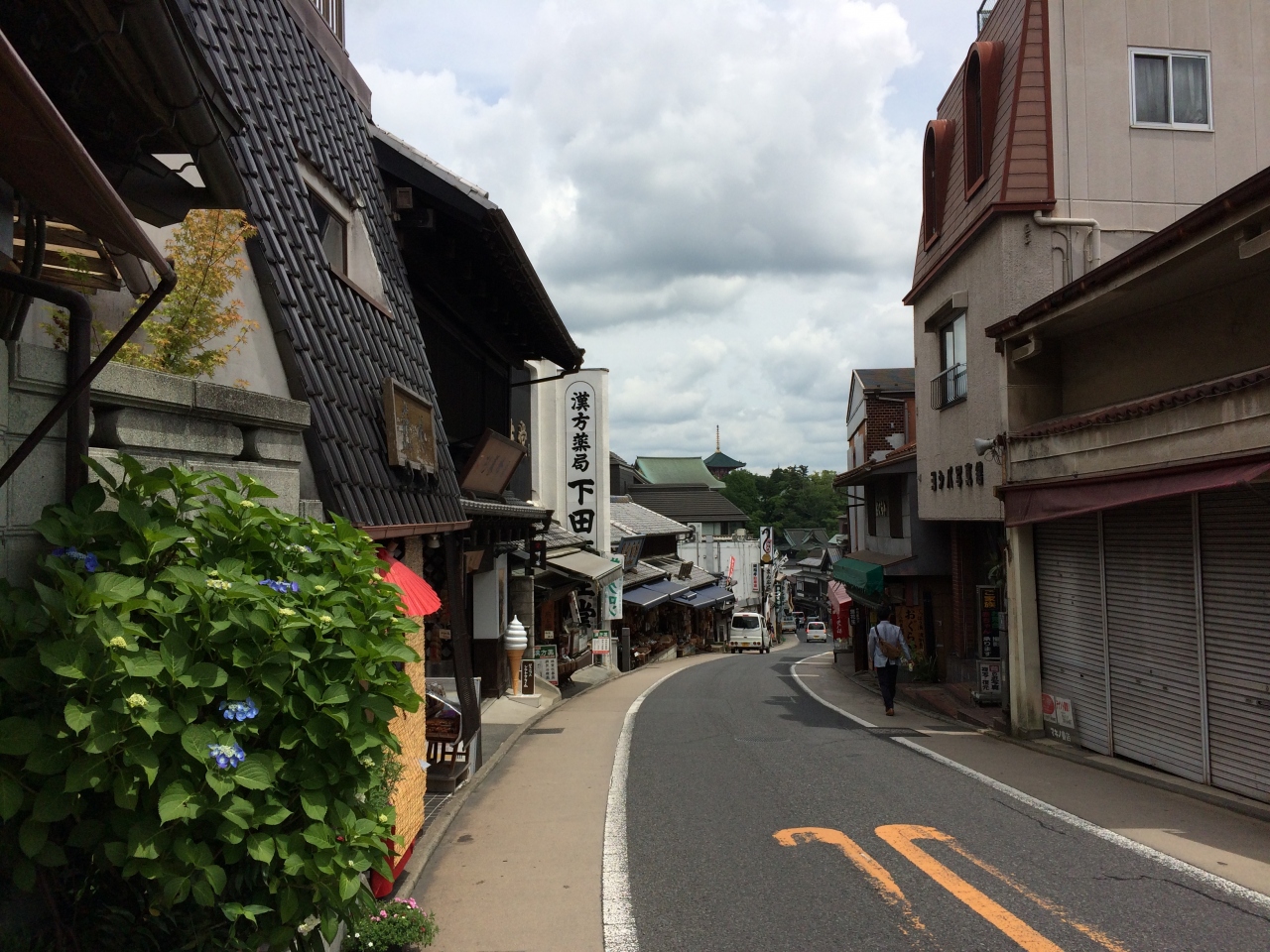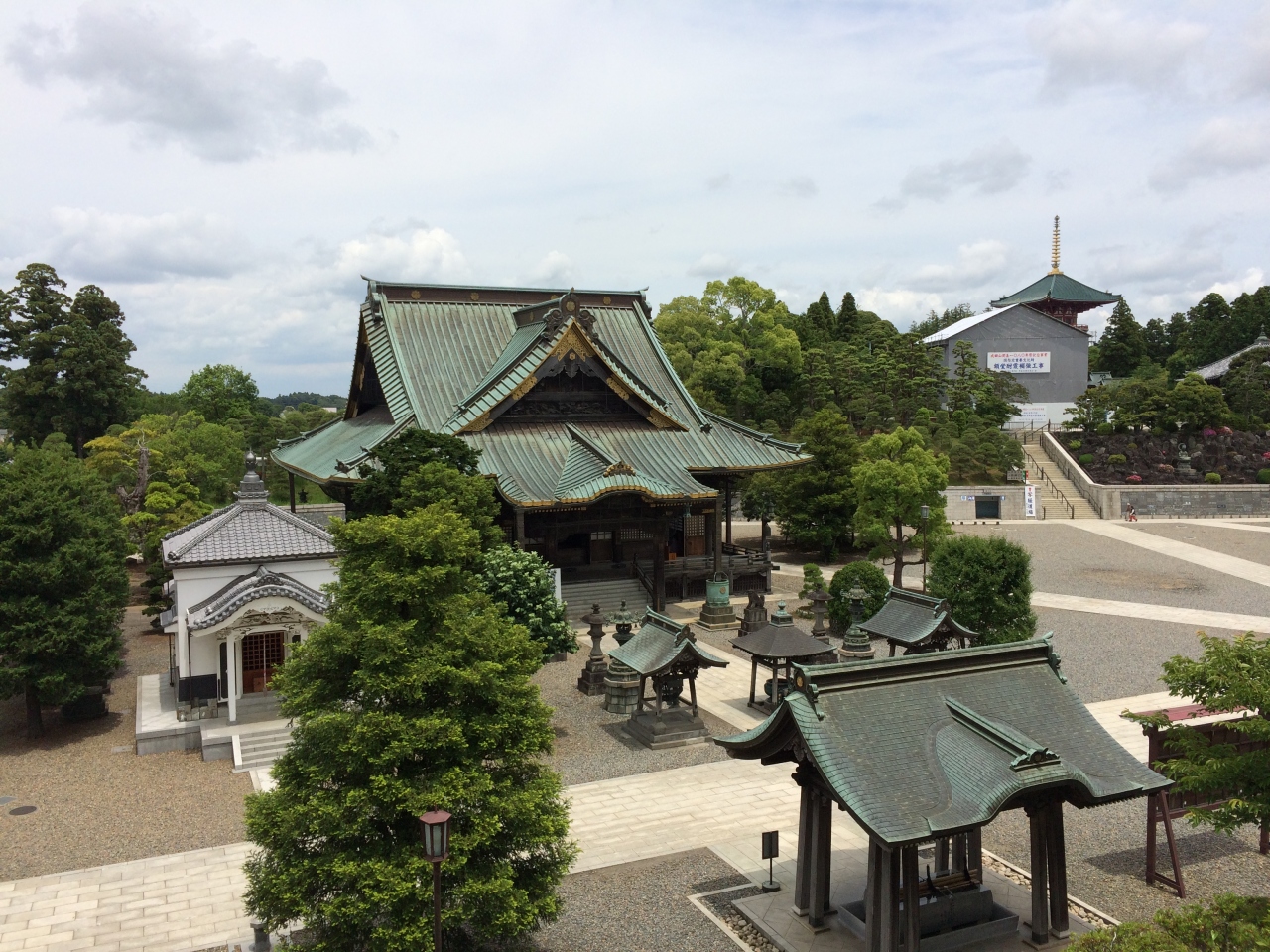 JRまたは京成線の成田駅から成田山新勝寺まで、徒歩15分ほどかかると思いますが、参道の両側にずらりと並んでいるお店を見ながら、ゆっくり歩いて行くと、楽しいし疲れも感じません。ただ、平日だったせいか、車通りが多くて、若干危険を感じました。