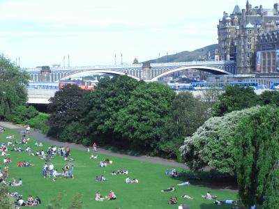 道路をはさんで、向い側は色んなお店が並んでいます。道路と庭園の間に、スコットモニュメントがあります。- 旅行時期