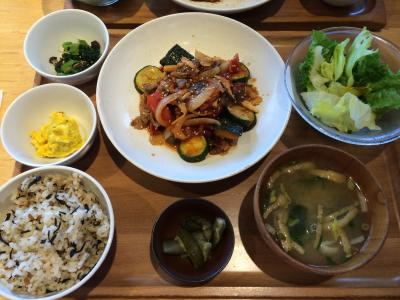 品目が多くて、栄養バランスの良い和食です。ご飯は、白米、五穀ひじきご飯、黒米の3種類から選べます。しかも、ご飯とお味噌汁は、お代わり無料です。お代わりする時、ご飯の種類を変えることもできます。