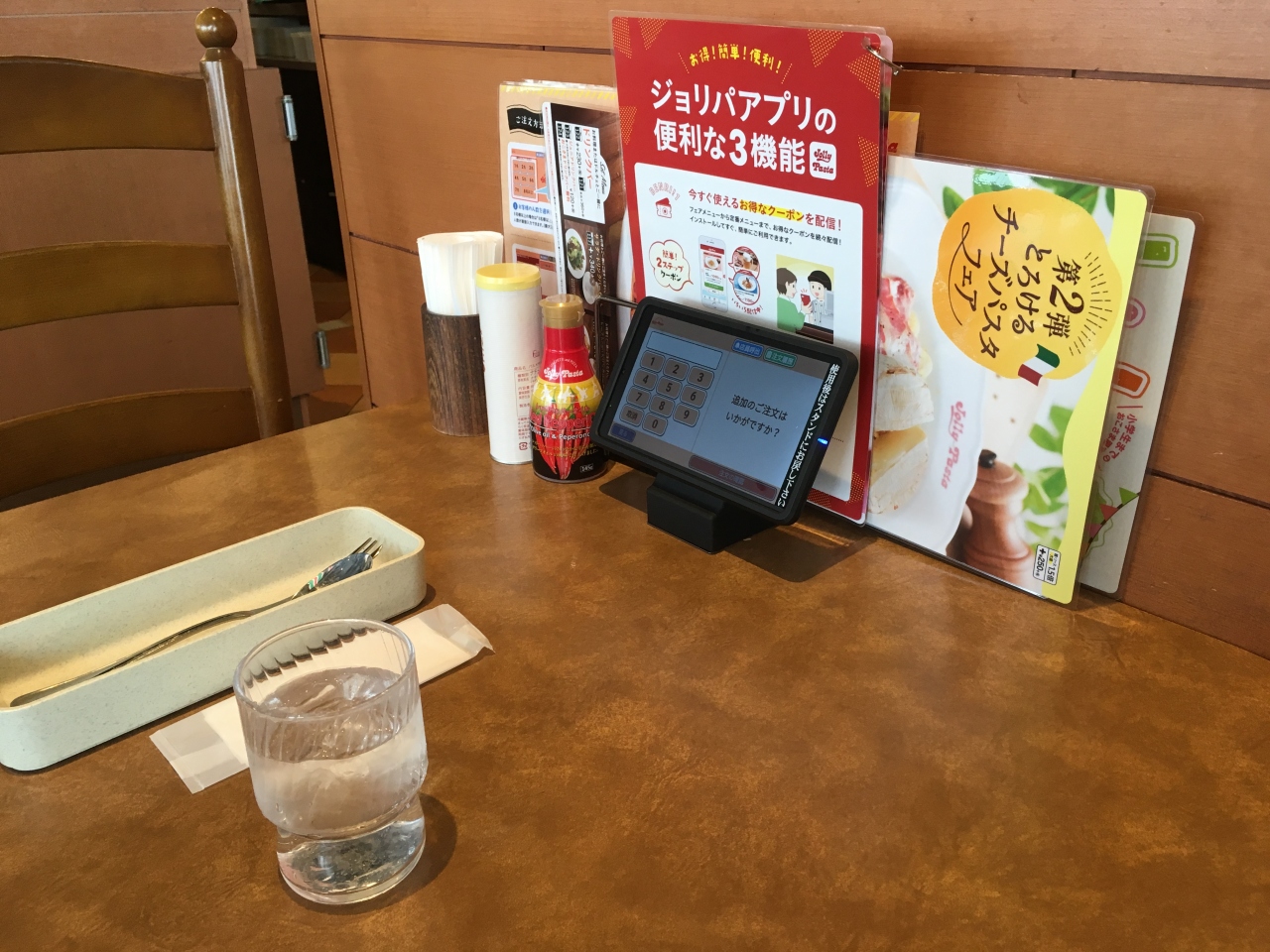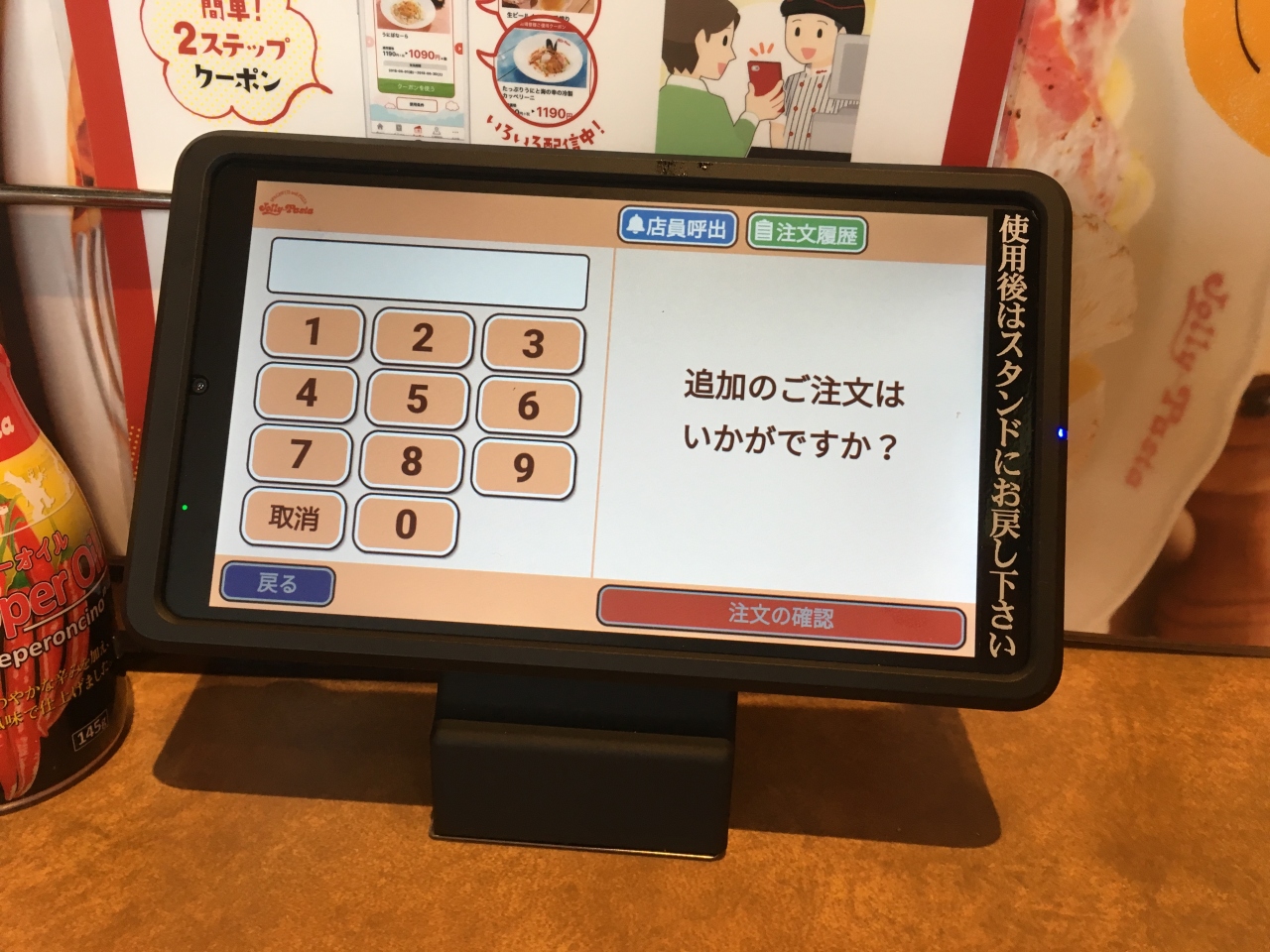 テーブルの上に、小さなタブレットが置いてあって、メニューを見ながら、タブレットで注文しました。