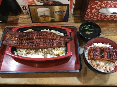 お店の方に聞いたら、びっくりうな重のご飯の量は2人前だというので、私はワンコインのうな丼と肝吸いを注文し、甥には2,000円のびっくりうな重を注文してあげました。そして、甥から蒲焼きを少しもらい、2人で完食しました。