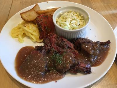私は牛肉ハラミステーキをいただきました。ソースはわさび醬油と玉ねぎソースの2種類から選べるので、玉ねぎソースを選びました。ちょっとしょっぱかったです。- 旅行時期