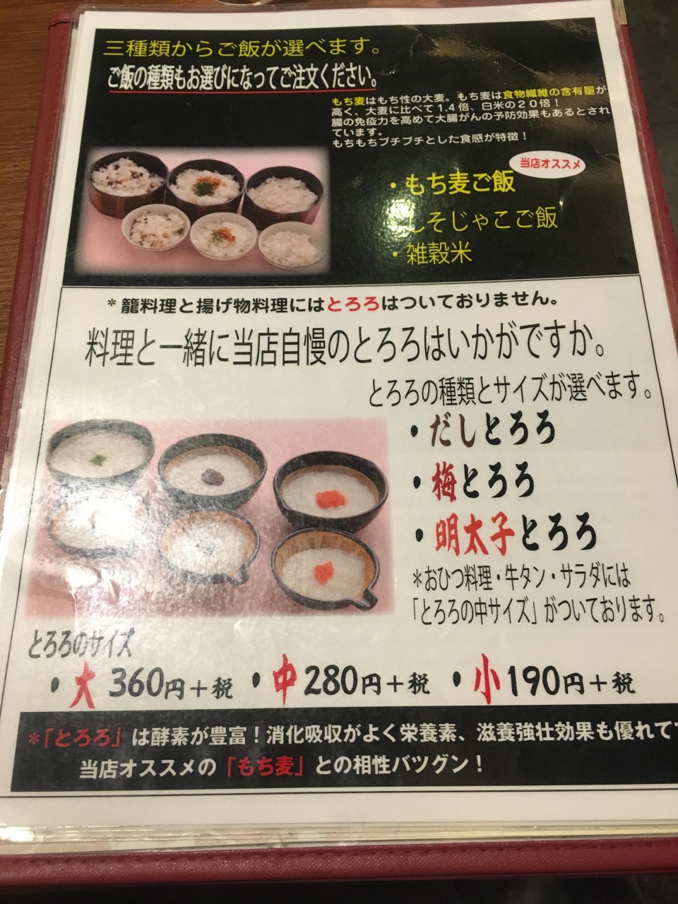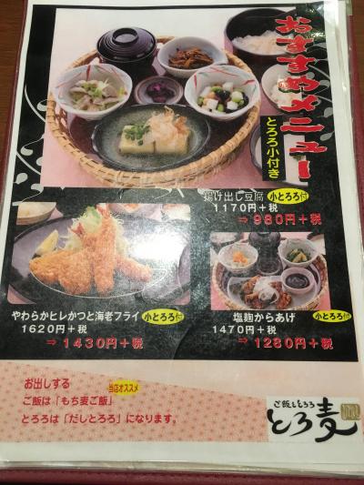 友人も私も、おすすめの揚げ出し豆腐のセットにしましたが、セットに付いているご飯は、もち麦ご飯、しそじゃこご飯、雑穀米の3種類から、とろろは、だし、梅、明太子の3種類から選べたので、同じ揚げ出し豆腐セットでも、友人とは違う組み合わせになりました。