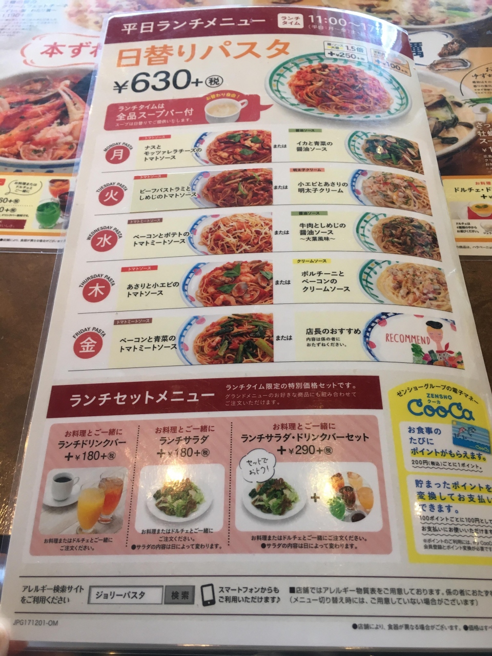 ランチメニューは、日替わりパスタで、こちらなら安くいただけます。- 旅行時期
