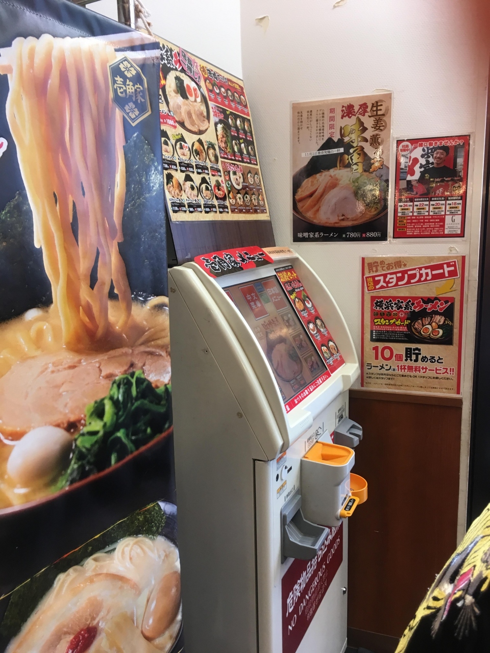 お店の入口は2つあって、表通りと裏通りの両方から入店できます。それぞれの入口に入ったところに、食券機が置いてあります。