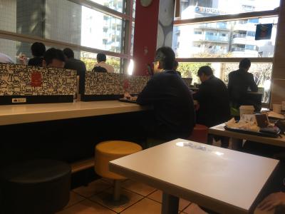 店内は1人掛けの席とカウンター席が殆どで、お客さんが多いですが回転も早いです。