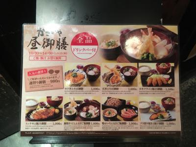 昼御膳は千円前後で、ドリンクバー付。ご飯と豚汁はお替り無料。
