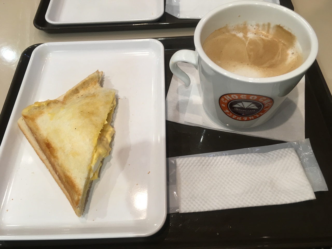 イーオンモール中のほかのお店は、まだ開いていなかったのですが、サンマルクカフェは、朝食提供のため、早朝から営業していました。- 旅行時期
