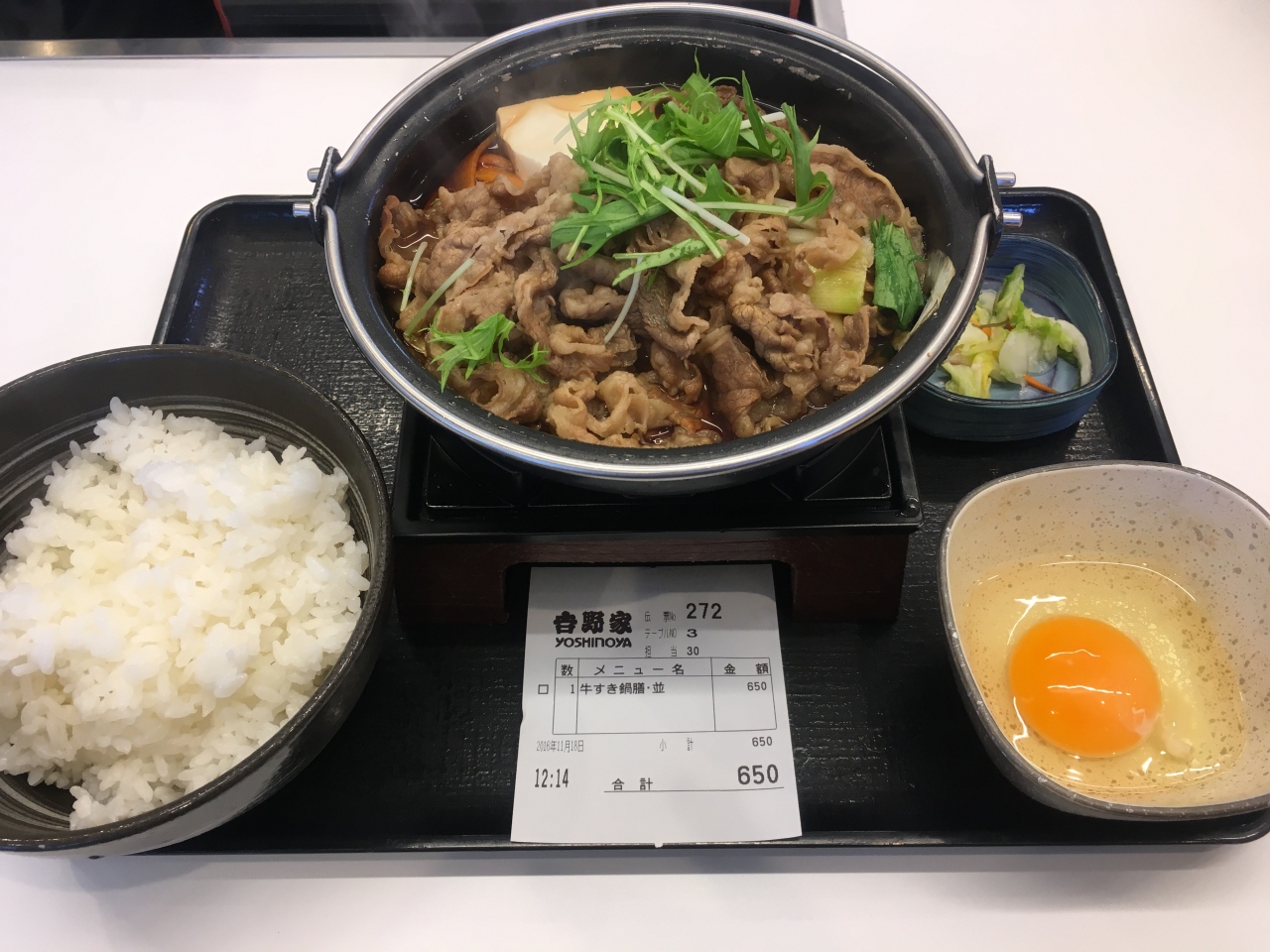 半日分の野菜が摂れる、熱々の牛すき鍋膳をいただきました。クーポン利用で、600円になりました。