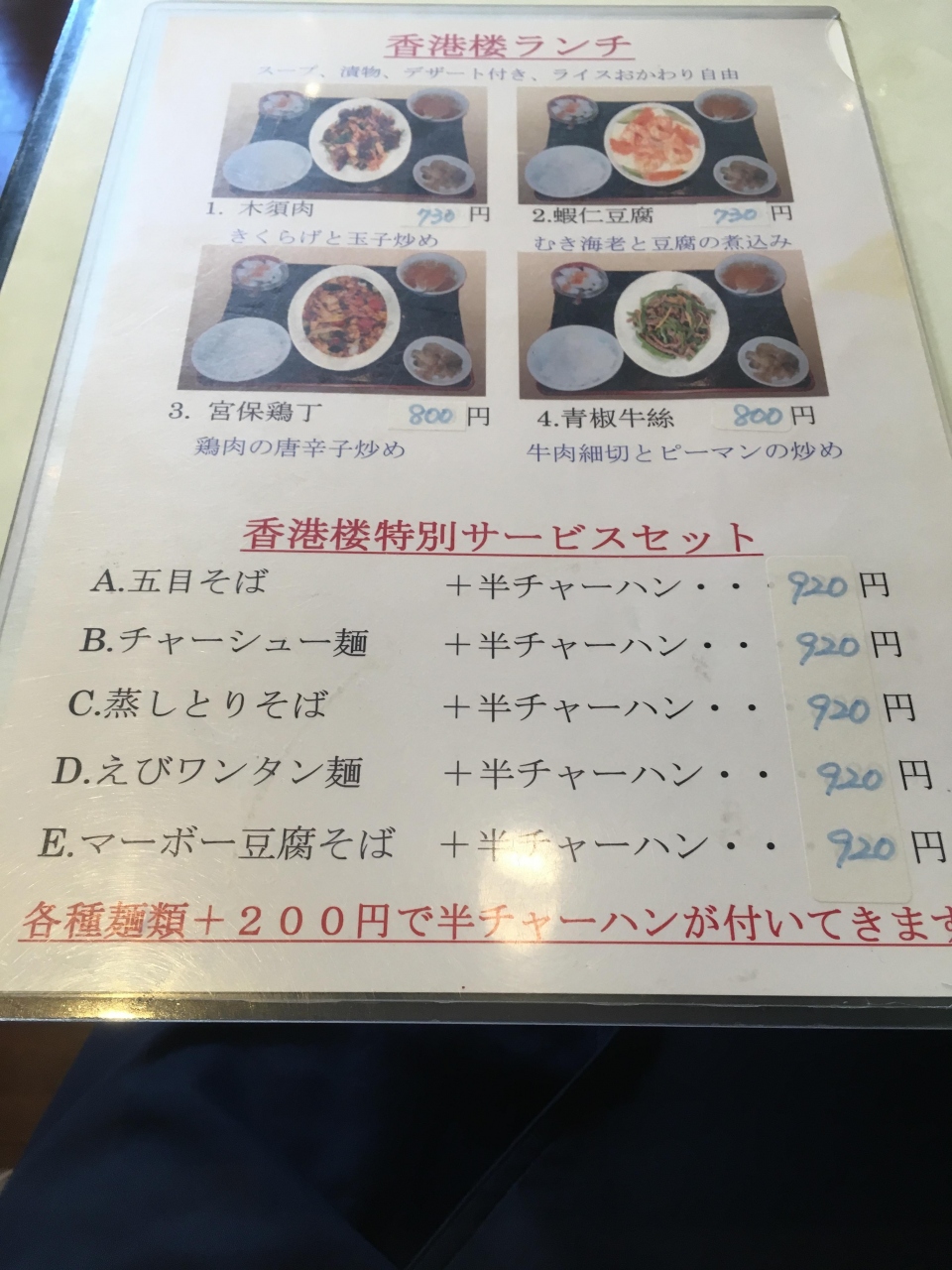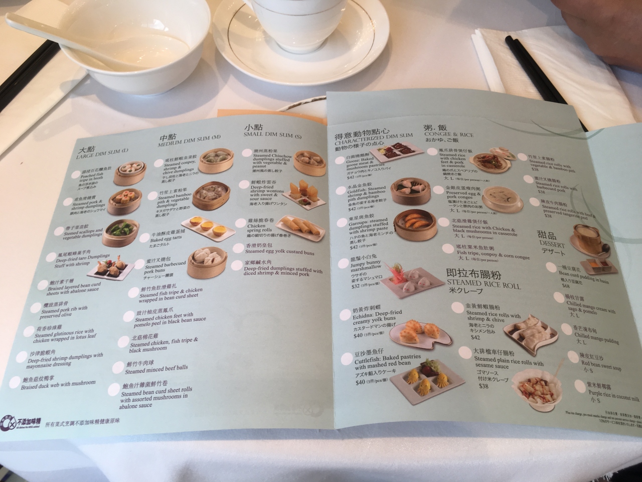 お店の外で、ビクトリアハーバーを眺めながら、20分ほど待っていたら、店内に案内されました。満席ではなかったのですが、席についてから、店員さんがなかなか来てくれなくて、また大分待たされました。まあ、座ってメニューをゆっくり見ながら待てたので、外で立ったまま待つよりは良かったです。