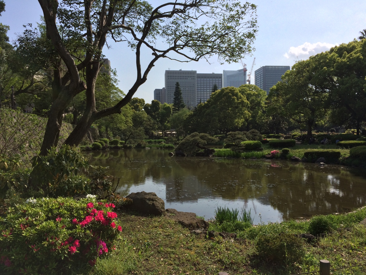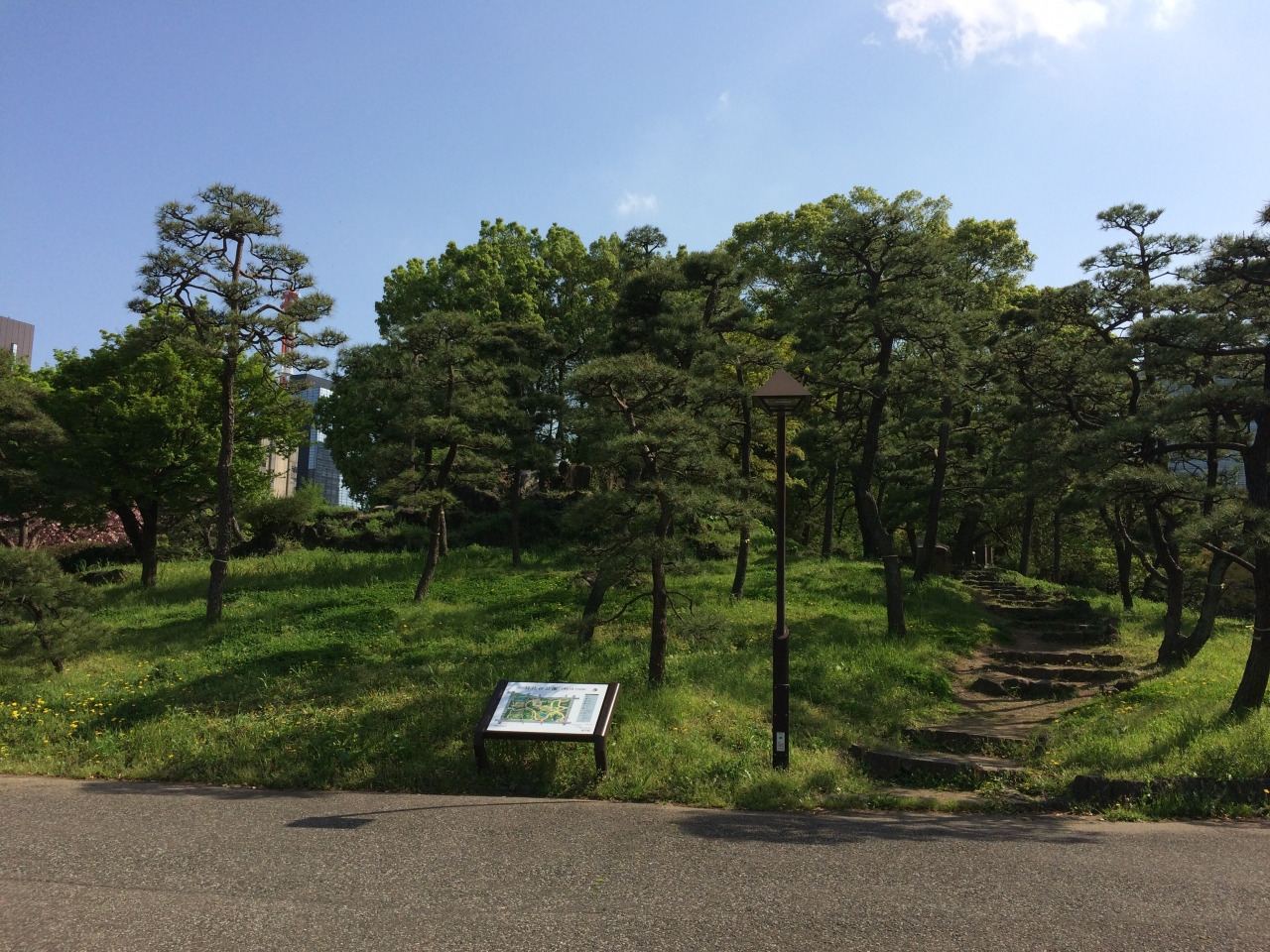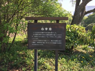 銀座・有楽町方面から来ると、日比谷公園に入ったら、左手のすぐのところに、日比谷見附跡が見えます。その横にある池が心字池です。