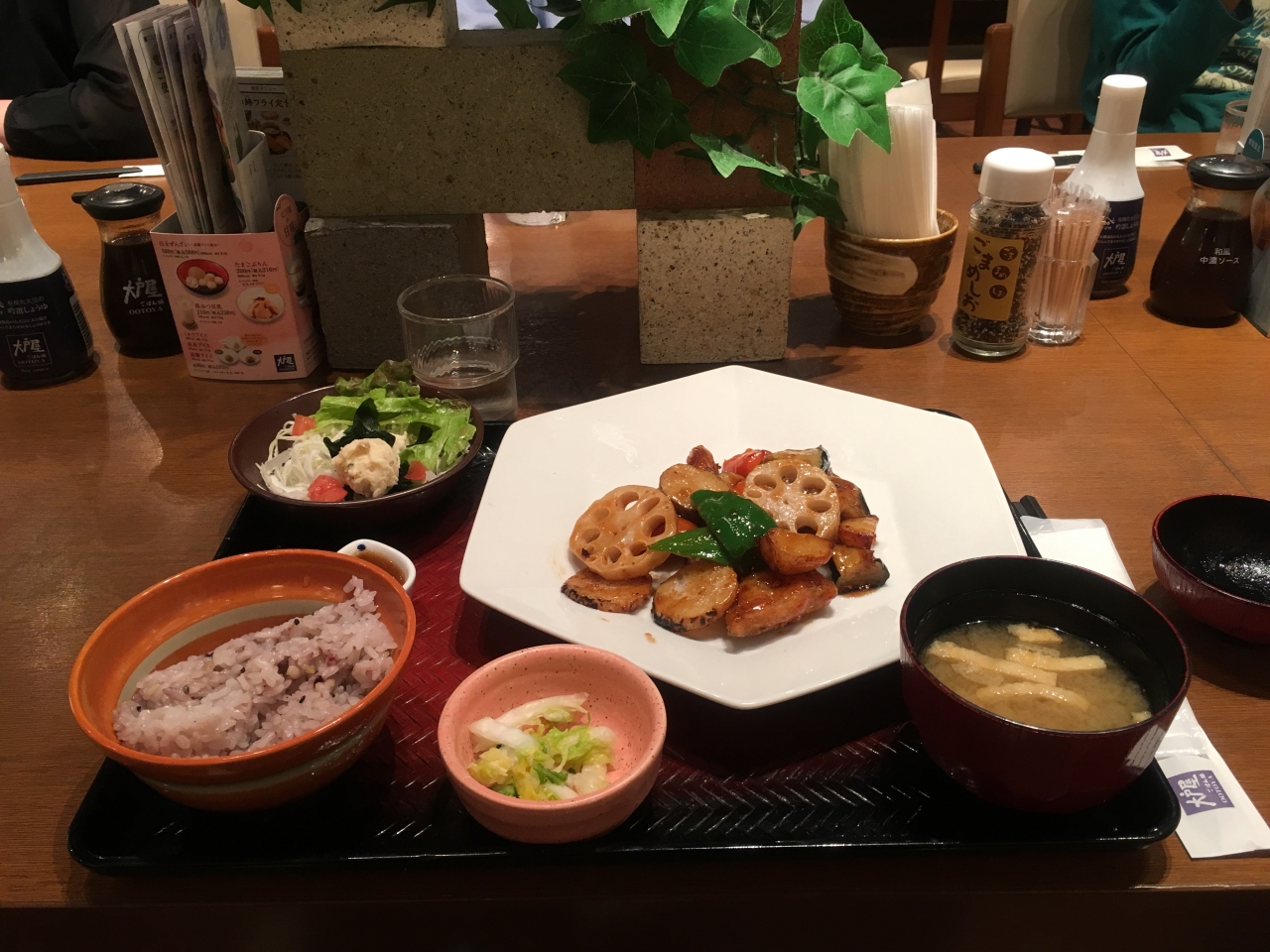 仕事が遅くまで長引いたので、お弁当でも買って帰ろうかと思っていましたが、帰りにお店の看板を見かけて、大好きな真だらと野菜の黒酢あん定食を食べに行くことにしました。夜8時ころだったのに、店内はほぼ満席でした。