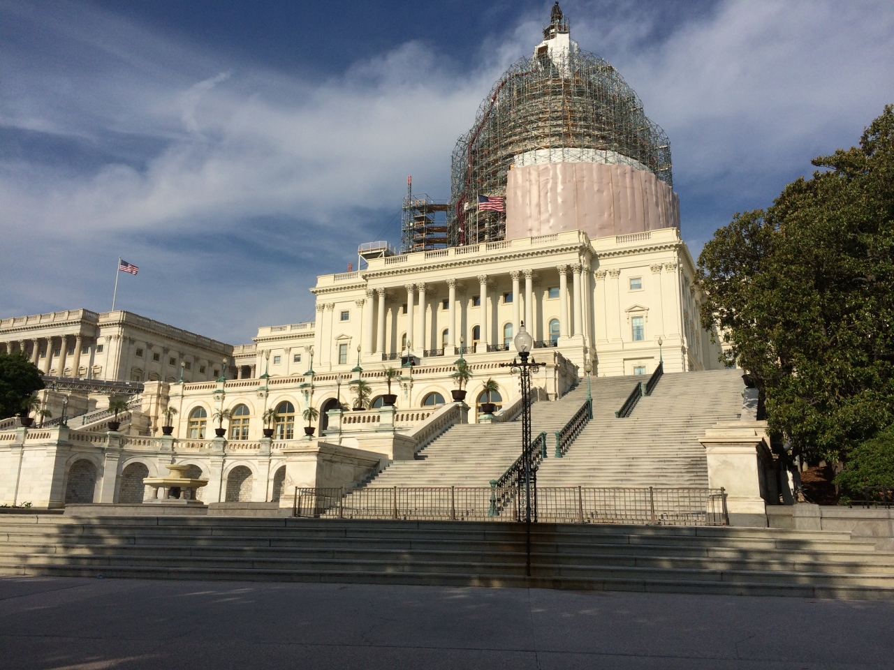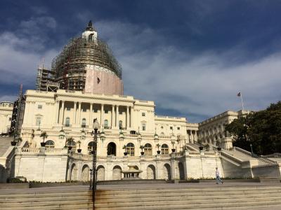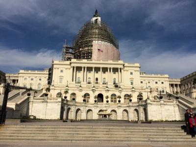 西側の正面に向かって、右手側の建物が下院(衆議院)で、左手側の建物が上院(参議院)だそうです。ちなみに、日本の国会議事堂はその逆で、正面から見て、右側が参議院、左側が衆議院がとなっているようです。