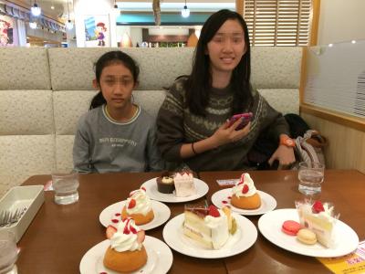 夕方に、ケーキの食べ放題に行きました。注文したら、お皿を持って来てくれます。そこから60分の制限時間がカウントされます。