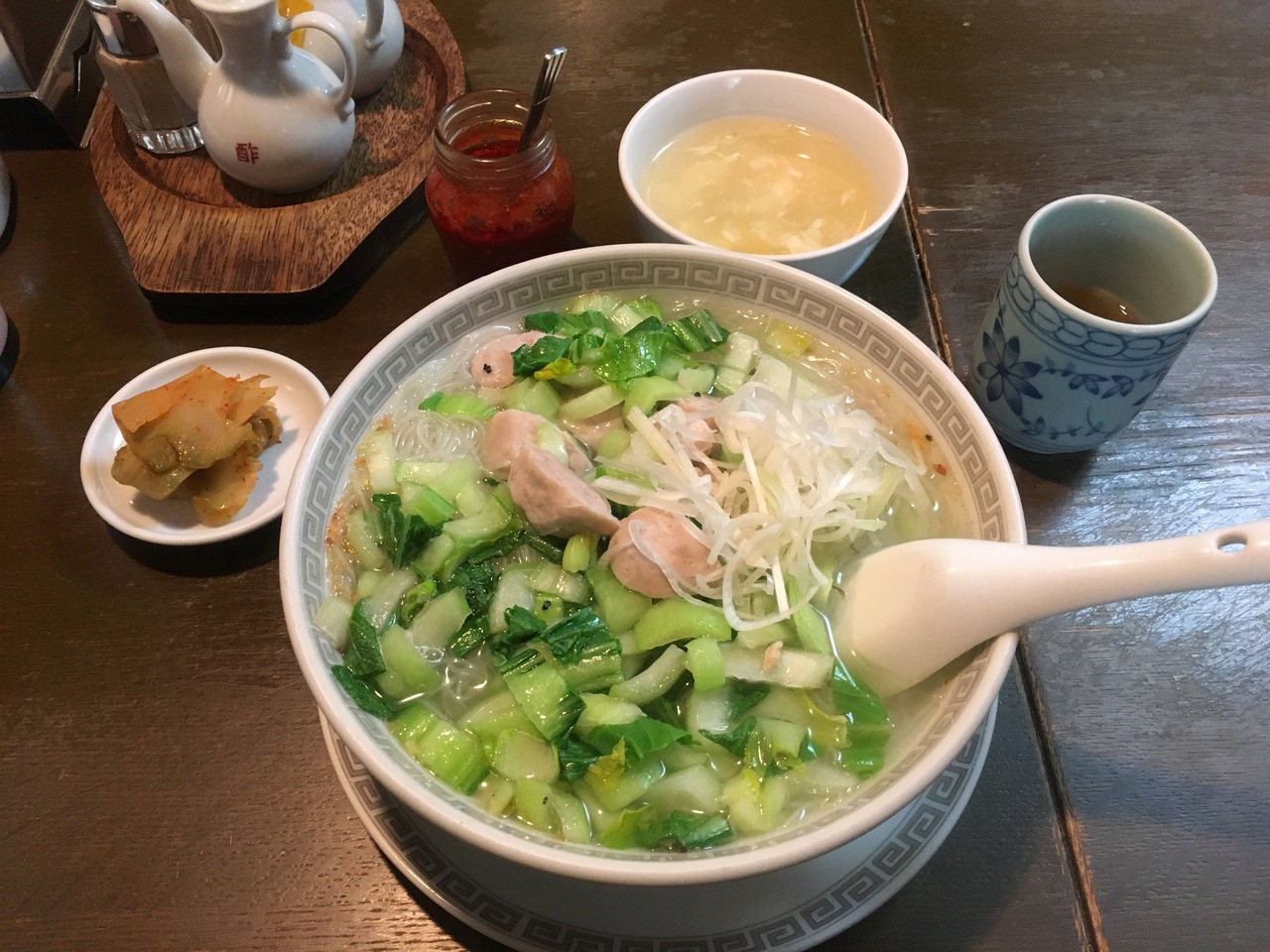 私が注文した豚肉団子の汁ビーフンは、あっさり過ぎて味が若干薄いと感じましたが、少し豆板醤を入れたら、とても美味しくなりました。