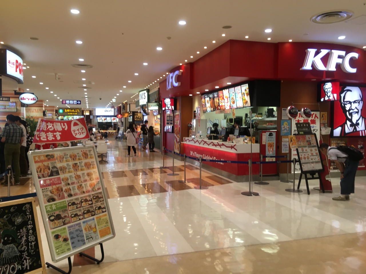 1階のフードコートでKFCの看板を見かけて、財布に入っているJAL国内線の搭乗券に付いている、Mサイズのドリンクが100円になるクーポンを思い出したので、利用しました。