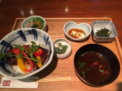 徹夜で仕事した自分へのご褒美に、1,420円の「牛リブロースのステーキ丼」を注文しました。味は良かったのですが、天井が高いせいか、どこかから冷たい風が入ってきて、ステーキもお味噌汁も冷めるのが早かったです。そのせいで、ステーキが少し硬く感じました。