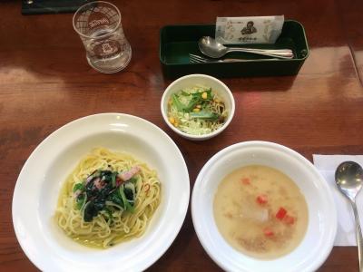 スパゲッティにサラダとスープが付いているランチセットが、たったの540円です。