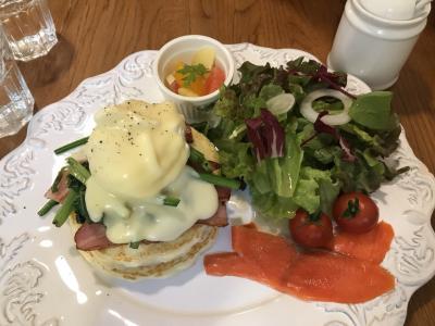 ホウレンソウ、ベーコン、エッグベネディクト、サーモンがついたパンケーキがとっても美味しかったです。15時くらいに行きましたが、意外とお客さんでいっぱいでした。美味しかったのですが、結構いい値段がするので、個人的にはもう少し安くしてほしいです。