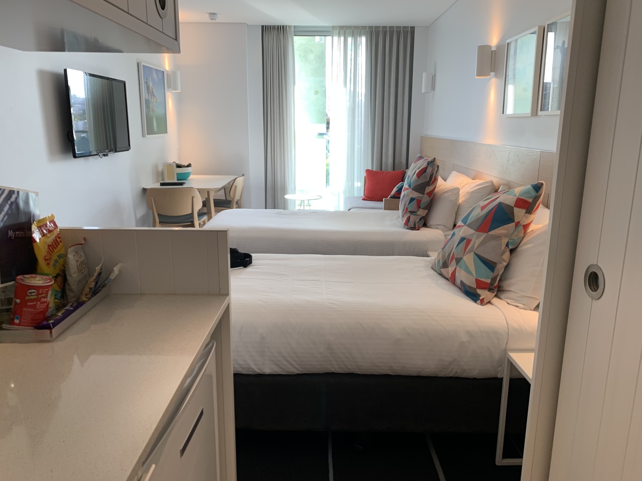 ボンダイビーチ付近のリゾート感を楽しみたく、こちらのホテルに決めました。1泊8000円程度で、お部屋は白を基調とした清潔感のあるお部屋、ベッドも大きかったです。ポットやレンジ、トースター、キッチンもあるので軽い料理もできます。なんていったってボンダイビーチから歩いて5分しないくらい!付近の店で買ったものをちょっと置いてまた街に繰り出したり、海から帰って疲れたからちょっと寝たり、そんなことができる最後の立地でした。