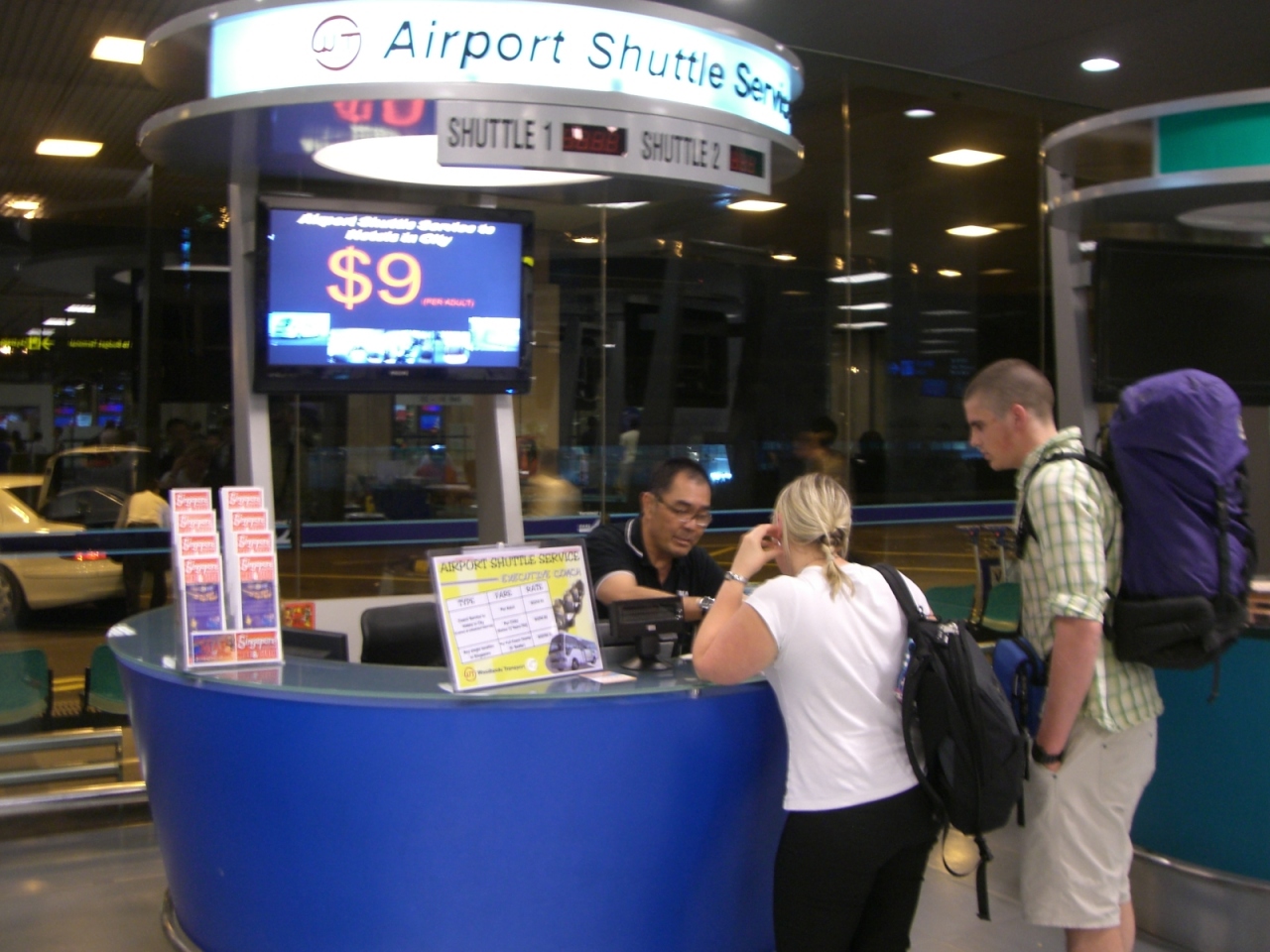 市内への移動手段として、深夜便での到着時などに便利なエアポートシャトル。宿泊先のホテルまで運んでくれますが、6~8名の相乗りのため、順番によってはかなり遠回りになります。