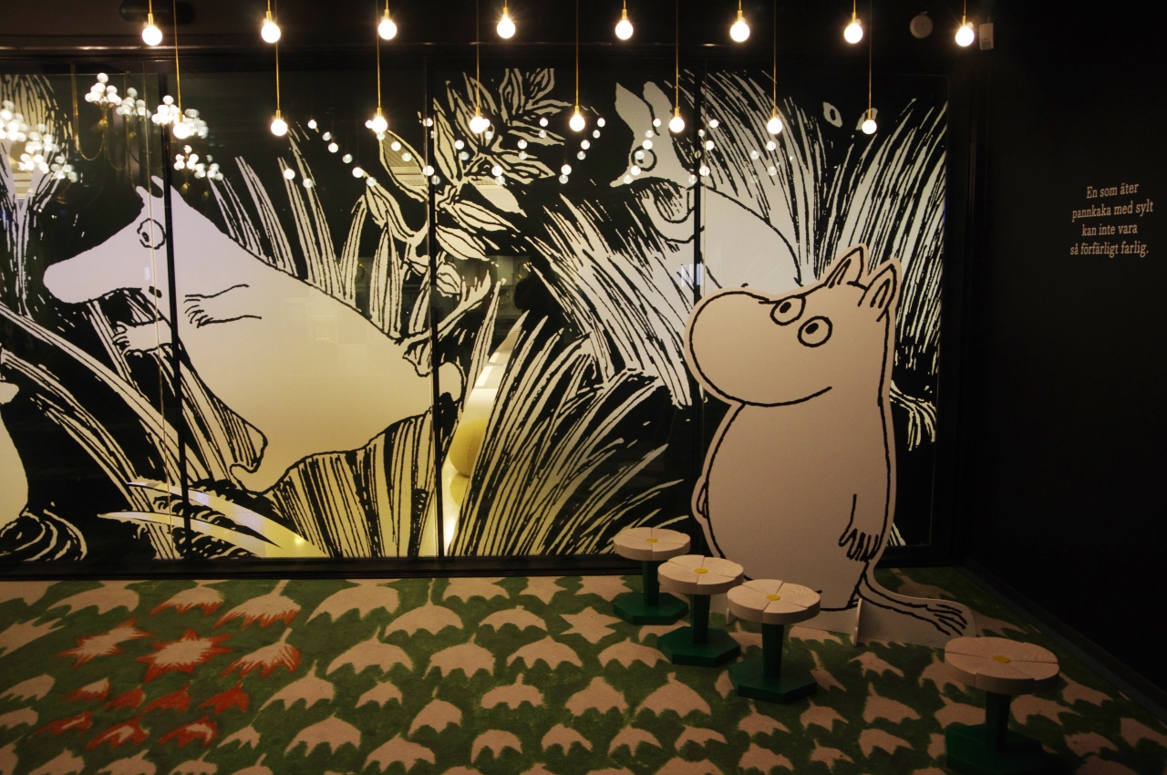 中の展示物は著作権の関係上撮影禁止ですが、一部の場所では撮影ができます。作者トーベ・ヤンソンのムーミン誕生まで、世界観、原画、各話のあらすじなどが展示されており、「ムーミン」というキャラクターしか知らなかった初心者の私でも見ていて楽しい場所でした!