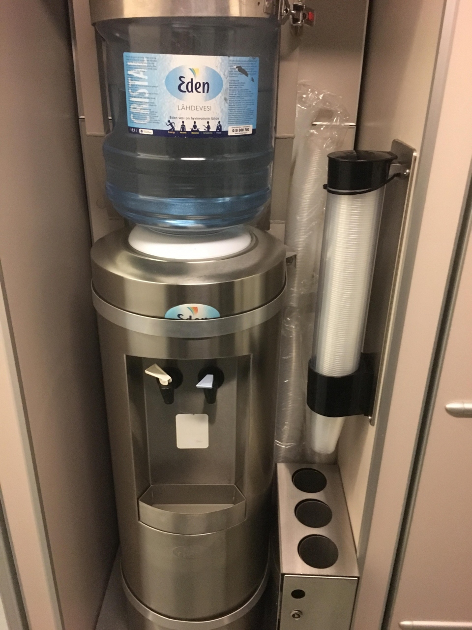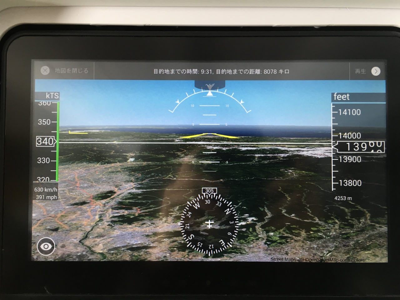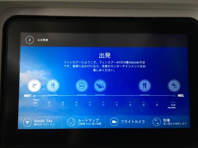 2017年夏以降、最新機材であるエアバスA350機を導入し、秋以降は成田⇔ヘルシンキ便はすべてこの機材に置き換わっています。出発地、到着地の現地時間の表示や機内サービスの時間などが分かるようになっています。