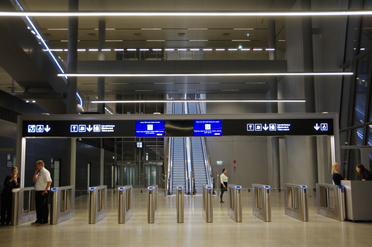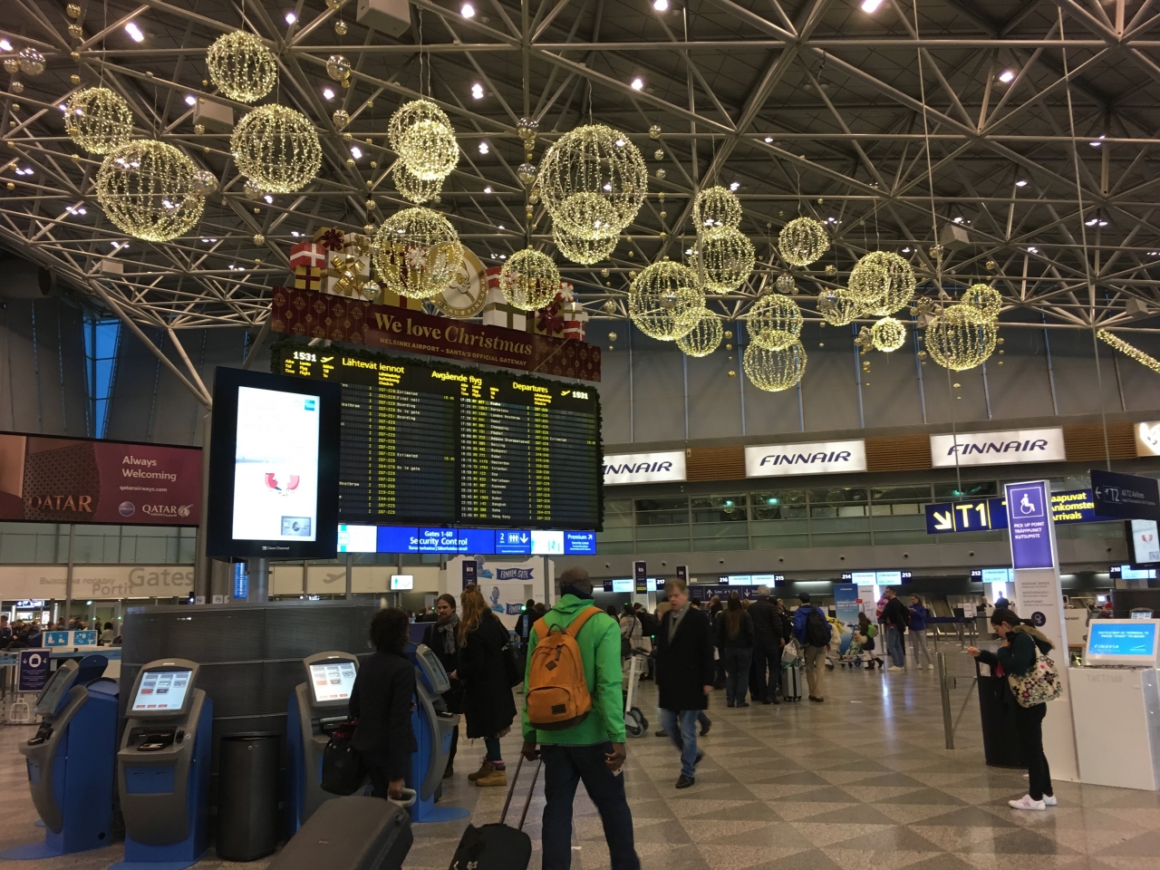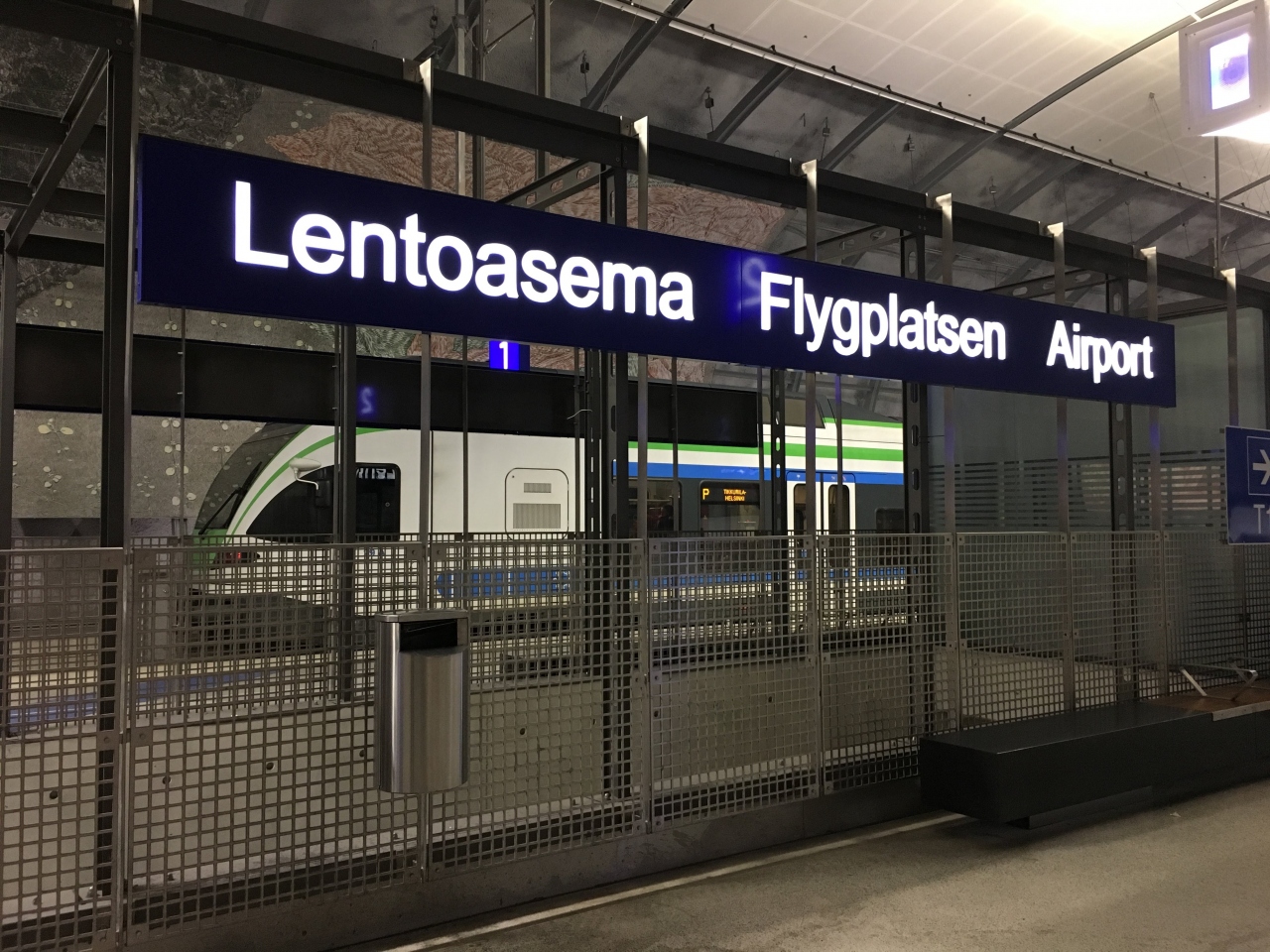 1階が到着ロビー、2階が出発ロビー、到着ロビーから外に出るとヘルシンキ市街地までのバスやタクシー乗り場、T1とT2の間の通路から地下に降りるとHSL(ヘルシンキ地域交通局)の空港駅に出て、I線とP線でいずれもヘルシンキ中央駅に行くことができます。どちらのルートも約35~40分くらいです。- 旅行時期