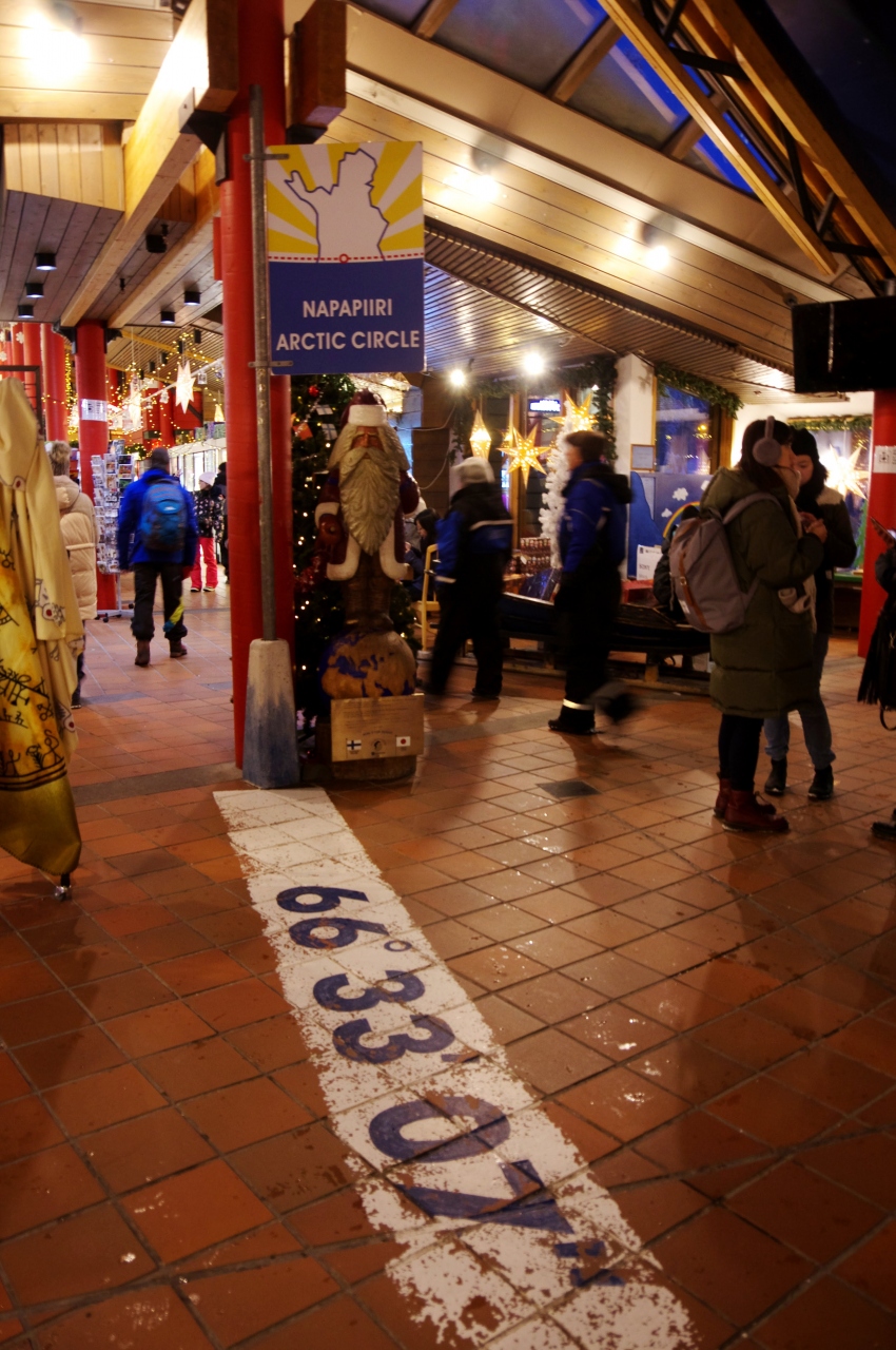 インフォメーションセンターの床には北極圏の境界を示す「66°33'07'N」のラインが引かれてあり、特に何も起こりませんが北極圏の境界を跨ぐことができます。とても貴重な体験でした。- 旅行時期
