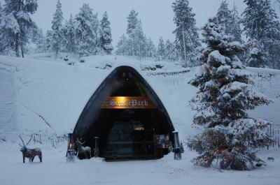 サンタクロース村の2㎞手前にあります。ロヴァニエミ駅から市内バス№8で行きましたが、サンタクロース村と間違えて下車したため、次のバスまでの待ち時間の間に利用しました。(便によってはサンタパーク停まらず、サンタクロース村にノンストップで行くバスもあります)