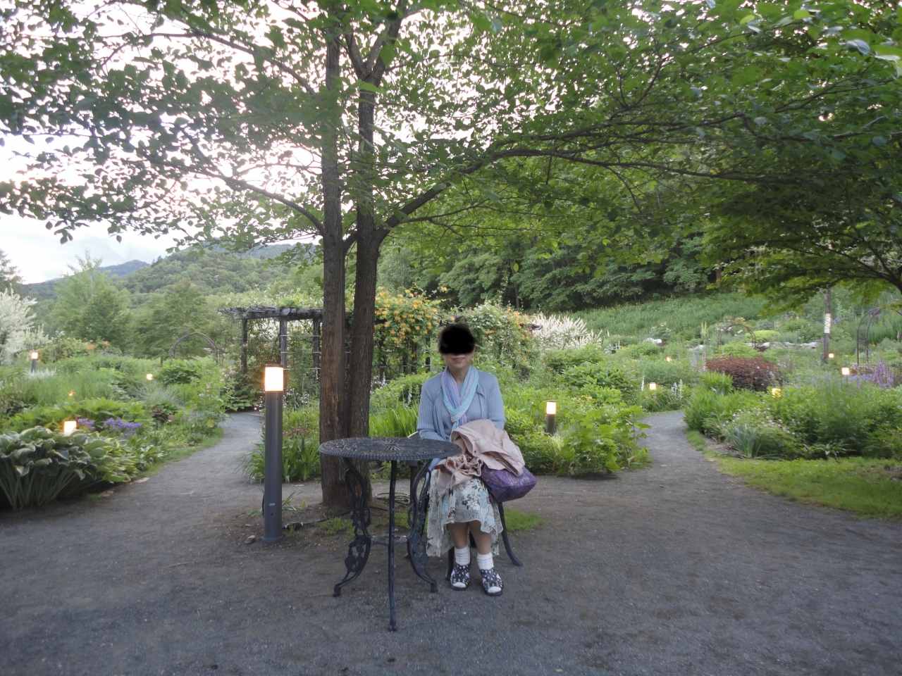 富良野では、有名なファーム富田を訪れたり、六花亭のお店「カンパーナ六花亭」を訪れお土産を買ったりとレンタカーでの移動を生かして、行きたいところだけをピックアップして楽しむことができました。新プリンスホテルに宿泊だったので、ホテルから徒歩5分程度で「風のガーデンの受付」へ着きました。ここでチケット(700円)を買うとガーデンまでマイクロバスで連れて行ってもらえます。夕方だったので団体客もいなくて私たちだけを送迎してくれました。ここのお庭は、思ったよりこじんまりとしていました。まず木のチップを敷き詰めた小道に感動し、優しいライトアップの光に照らされた妖精が舞い降りてきそうな幻想的ですてきな空間を堪能しました。風のガーデンを下ったところには新しい「ローズガーデン」が造成中でしたが、まだ入ることはできませんでした。あまりに静かな空気に癒やされながら散歩しているとなんと野生の子狐がこちらを見ているではありませんか。子狐は声も出さず、くるりと向きを変えて一目散に走り去っていきました。あ~と私たちはため息。