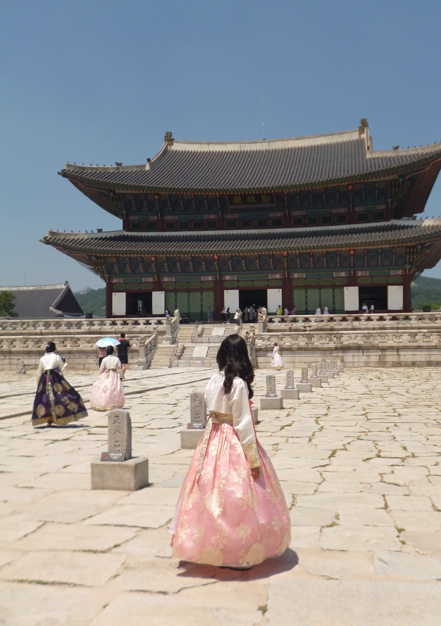 かなり中は広いので観光客はいても写真などもまあまあゆっくりとれます。日本でもそうですが、やっぱりチマチョゴリのレンタルが人気。浅草や京都で着物で散策するような感じより、もっと価格が気軽に借りれる、また免税店とかでクーポンで無料で着れたりするのも影響しているし、古宮の入場料無料になるのも大きいと思う。