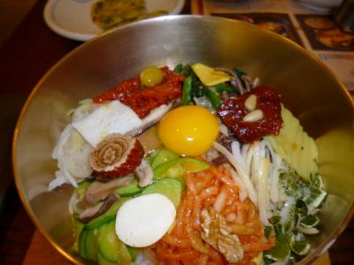 日本でいうすき焼きみたいな食べ物がプルコギです。こちらオーダーするとかぼちゃのサラダとかいろいろ付け合せもってきてくれます。プルコギのお肉、正直吉野家の牛丼みたいな感じに近いかなと思いました。ガイドブックにすき焼きみたいなものとかいてありたしかにそうなのですが、すき焼きって日本だといいお肉でやるせいかやわらかく肉のおいしさという感じにくらべるとまあ、値段も安いので普通かなっと。ファミレスみたいな感じで気軽にはいれるという雰囲気で庶民的なので子連れのかたにはよいなと感じた