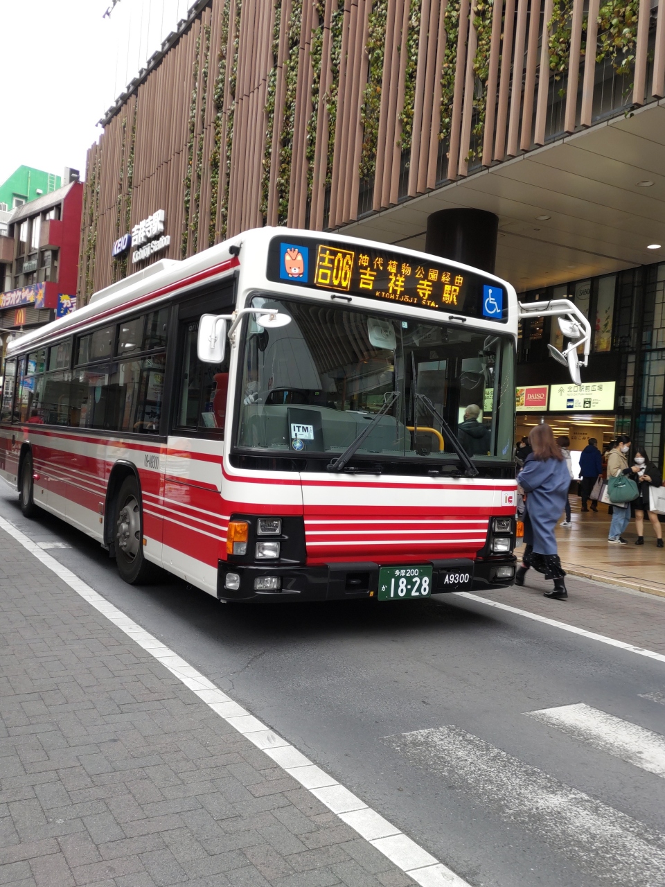 吉06にのって、吉祥寺駅から神代植物公園にいって、また駅にもどってきました。吉祥寺駅では乗り場とおり場が異なります。乗り場は丸井のまえあたり。そして神代植物公園から駅にもどってくるときは、駅の本当に目の前でおろしてくれる