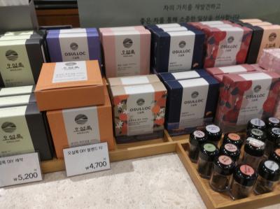 地下鉄に直結していて、免税店もホテルも併設していて大きなデパートです。デパ地下がとても充実している。osulloc のお店がはいっていて、osulloc は明洞の路面店とか撤退しているけど、デパ地下に入っていてうれしかった。お茶の種類が豊富で、箱のパッケージ入りのものは4700Wでお土産にぴったり