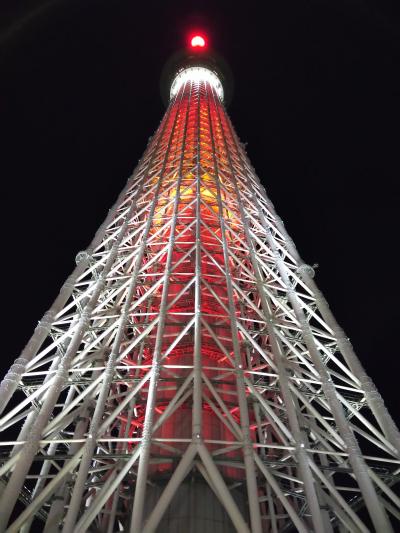 部屋からスカイツリーが見えてちょっとうれしかった。ただ窓ガラスが網目になっているので透明でないから写真は難しい。- 旅行時期