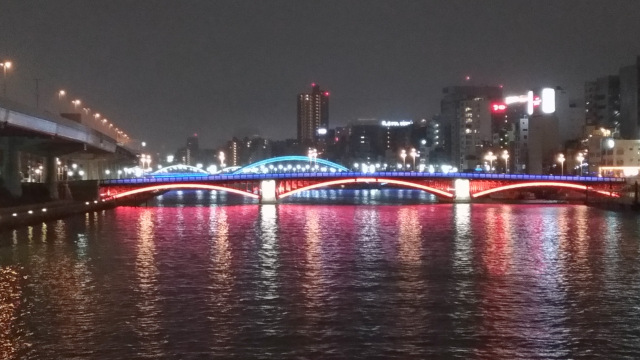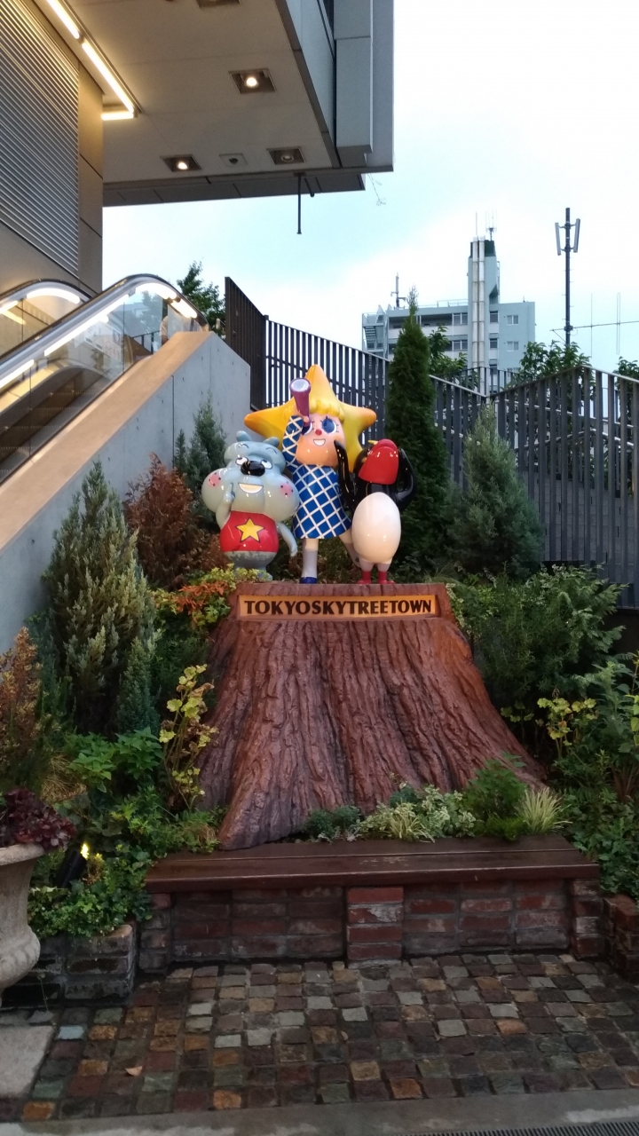 天気がわるかったので、夜あるいたがスカイツリーがくもってみえて残念。天気がよいと夜景がすごいきれいになってすてき。また途中にソラカラちゃんの絵が隠れている。かなり隠れていてみえないし、写真はとってもめだたないという隠れキャラがいます。川をわたるのですが、スカイツリーがきれいにみえたりするとよい感じです。