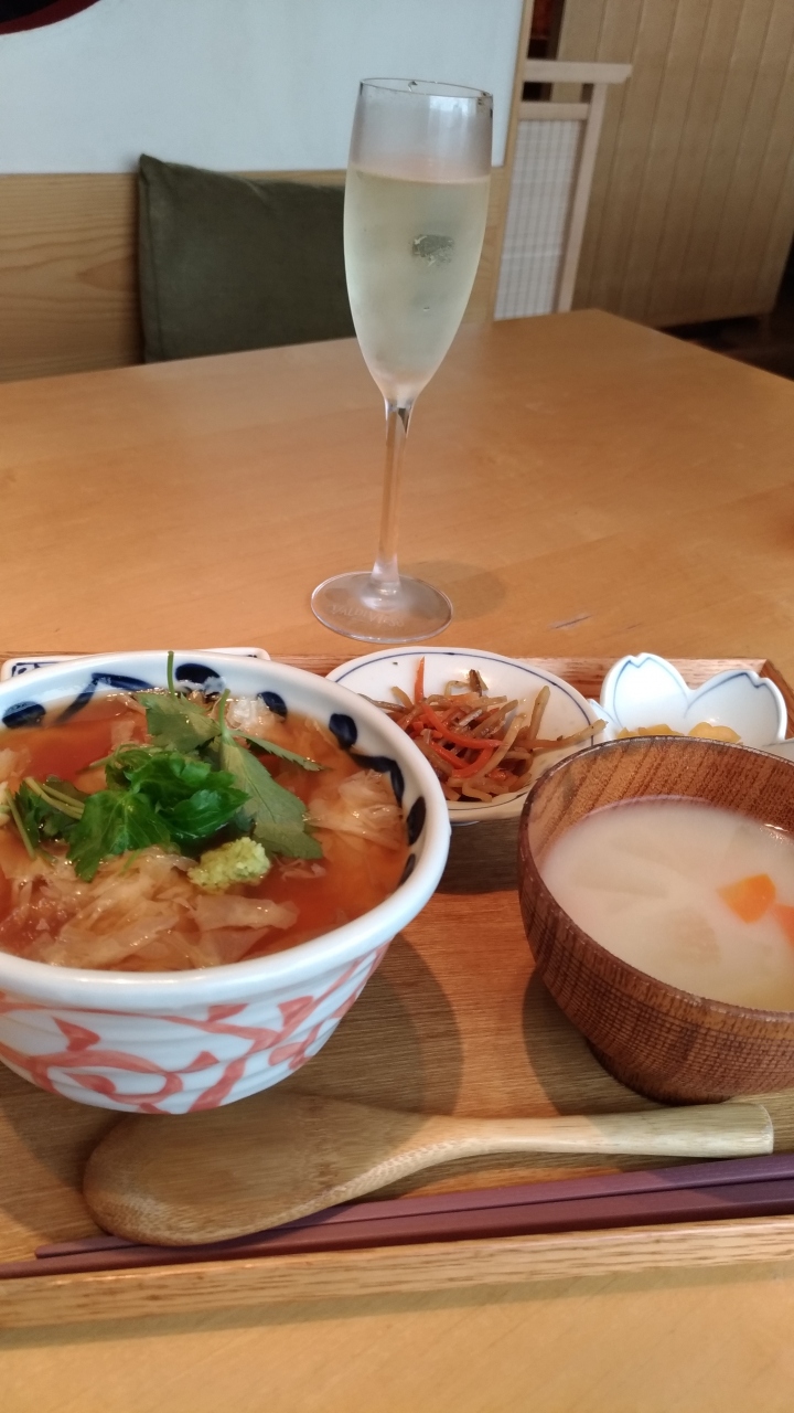 入ると検温とアルコール消毒を行っています。店内はカウンターもありますが、ボックスシート、奥に靴をぬぐシート席などあります。インスタグラム投稿するとスパークリングワインかジンジャーエールがもらえます。エポスカードもっていると抹茶と和菓子のサービスもあり、お得。冷たい麦茶がでてくるし、サービスも気が利いている。和食メニューで圧倒的に女子の利用が多いです。やさしい味付けです