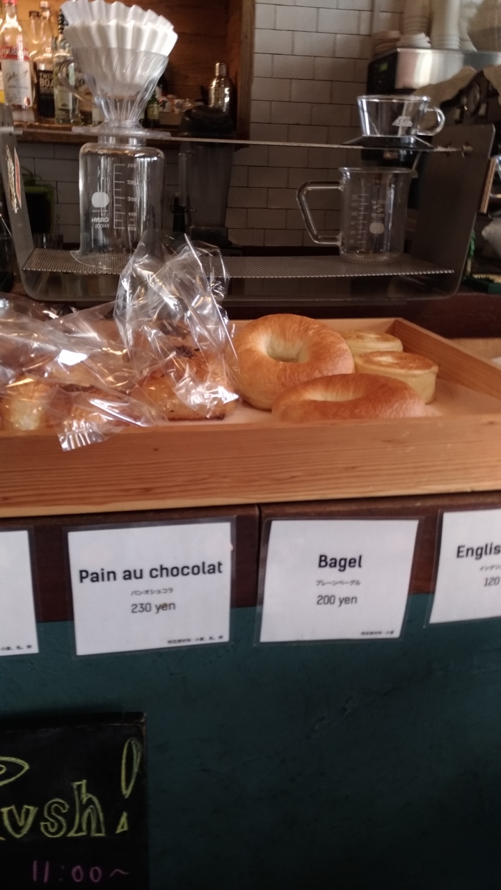 ちょっとビルの中とか年季はいっている。でもその古さをよい感じでリノベーションというかいかしてインテリアとしている。3Fがパン屋さんになっているが、1Fの入り口付近でもパン売ってます。そしてモーニングから営業しているので、あさから楽しめます。