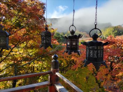 以前にもおとずれたことがありますが、青にモミジの季節で紅葉にもきたいと思い、訪れました。土日は混むかもと思い、平日月曜の朝いちばんのバスで伺いました。バスも座って、たぶん待っている人すべて座って訪れました。天気がすこし雨だったのが晴れてきて紅葉楽しめました。雨上がりで幻想的な感じでした。