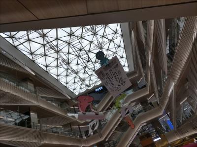 GINZA SIXを象徴する中央吹き抜けのスペースには、毎回アート作品が空中展示のような形でおかれます。訪れたときはジャン・ジュリアンのThe Departureという作品でした。空飛ぶ紙の絨毯に乗って、世界を探検する旅へ出発するというテーマなので、空中にあるのは迫力あるけど、のっている人の絵がちょっと微妙。今までの中で草間彌生のかぼちゃが、アート作品では一番よかった。
