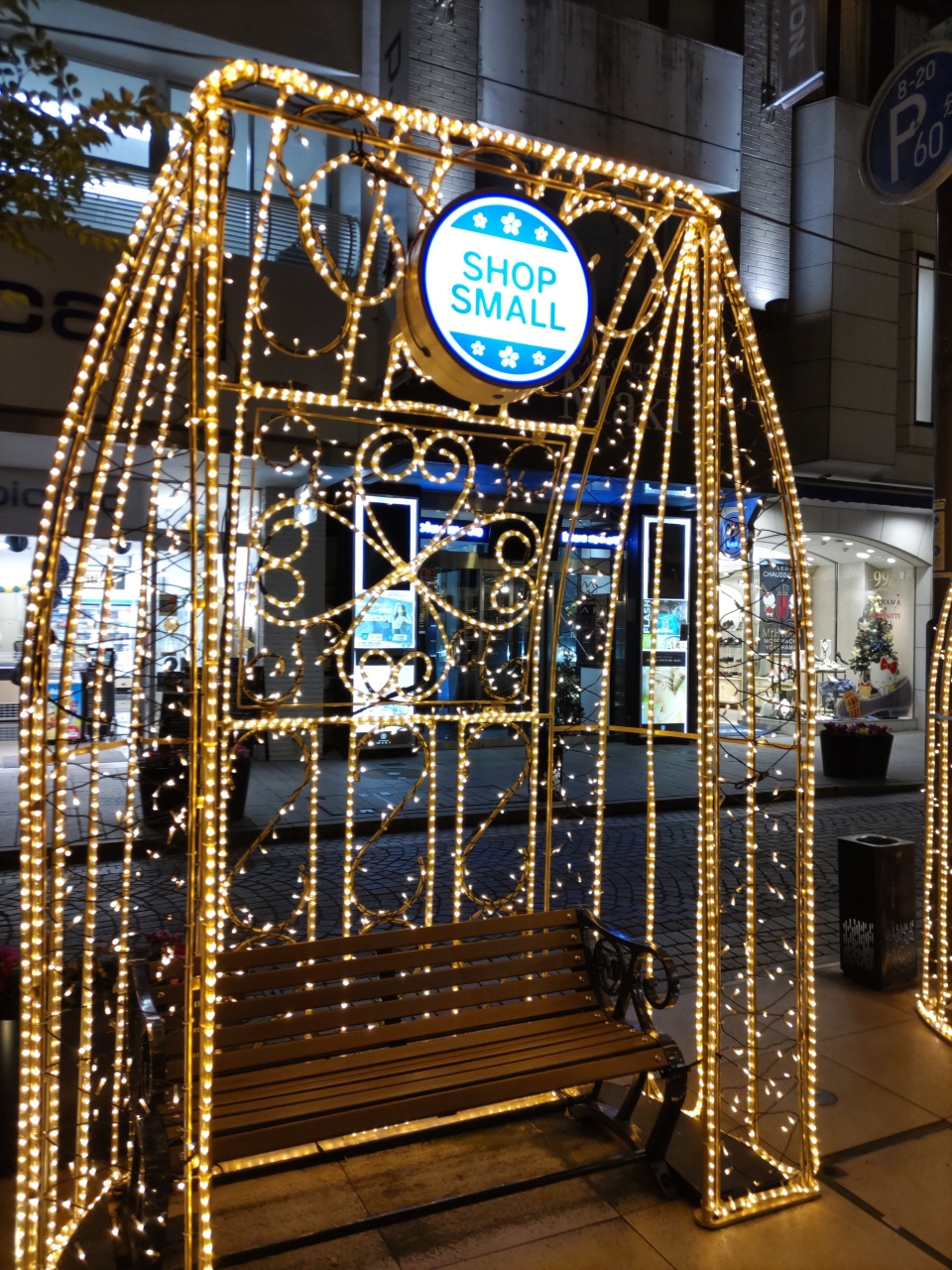 中華街からぶらぶら歩いてきました。商店街は日曜でも19時ごろにはお店しまるところが多いせいか、ちょっと閑散としていて、ほかのみなとみらいのエリアに比べると寂しい感じ。通りにイルミネーションライトアップがされていますが、地味な感じ