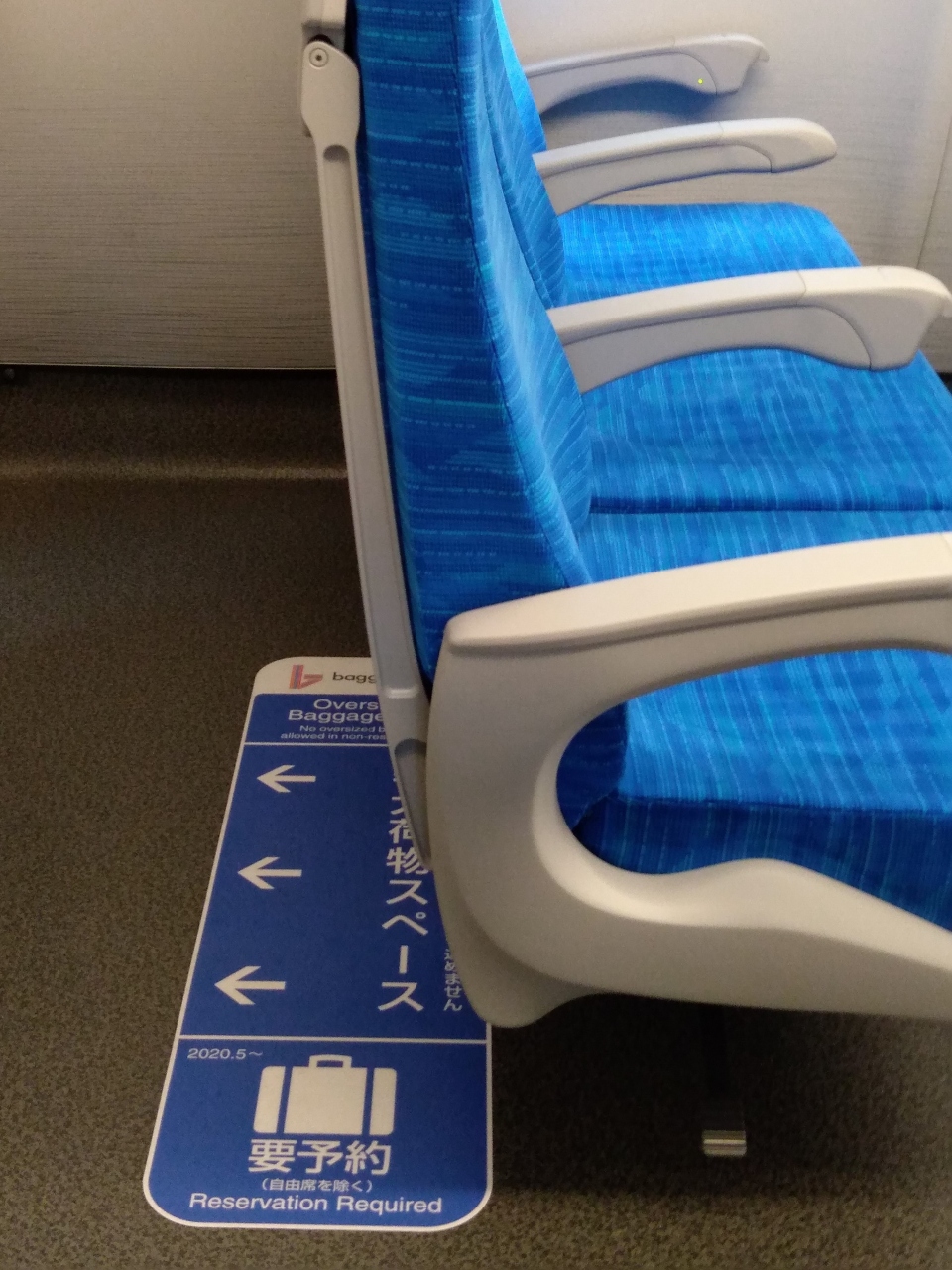 写真は車窓からです。現在東海道新幹線ではスーツケースなどで大きなものは、荷物置場付の座席を予約するようにとなっています。 事前予約制です。ちなみに席は一番後ろとなり、自分の席の後ろに荷物をおくようなスペースになっています。