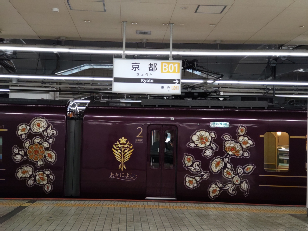 京都駅からのりましたが、まず乗り場がとても八条口からはなれていてびっくりするぐらい遠かった。そして、電車は混んでました。こんでいるのに、扉の横に車内の温度を快適に保つためなどでしょうが、列車のドアを開け閉めできるようにボタンがついていてびっくりしました