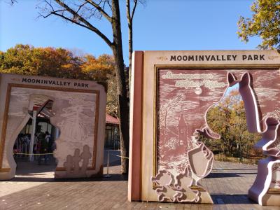 紅葉の季節で、とてもきれいでした。ここは自然のなかにあるテーマパークという感じです。パーキングからエントランスまでそこそこ距離があります。灯台とかムーミンの世界の雰囲気の建物がいくつもあり、写真映えする。入口のモニュメントは特に映える