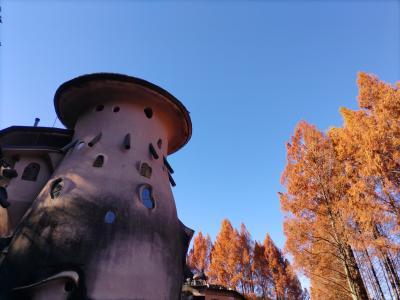 紅葉はおわりのころでしたが、日曜でも9時のオープン時間ごろににいったのでパーキングもすぐとめることができた。天気だったので、写真も映えるようにとれた。人はそこそこもちろんいるが、きのこの家とか入場制限もなくはいれました。