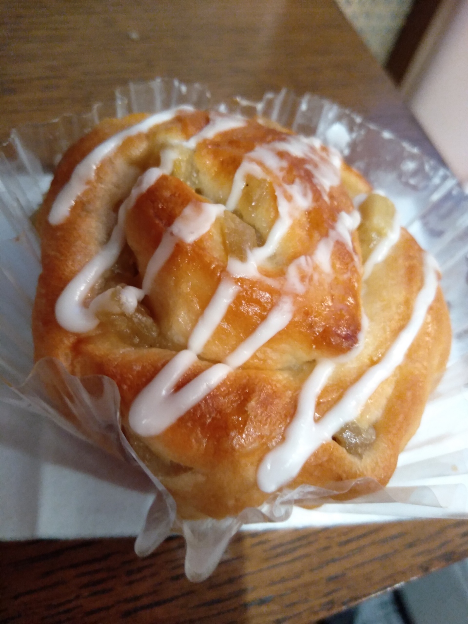 <各日限定24食>干し芋ロールというのがあったので購入しました。パンですが、日持ちしなくて、当日といわれました。<各日限定24食>とありましたが、20時ちょっと前で2個残っていた。生地がかなりあまめ。上に白いお砂糖がかかっていて、またあまい。そして干し芋のかけらがまじっています。