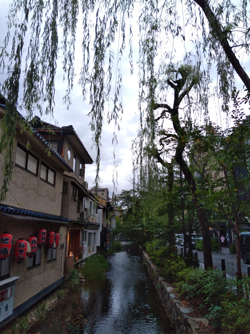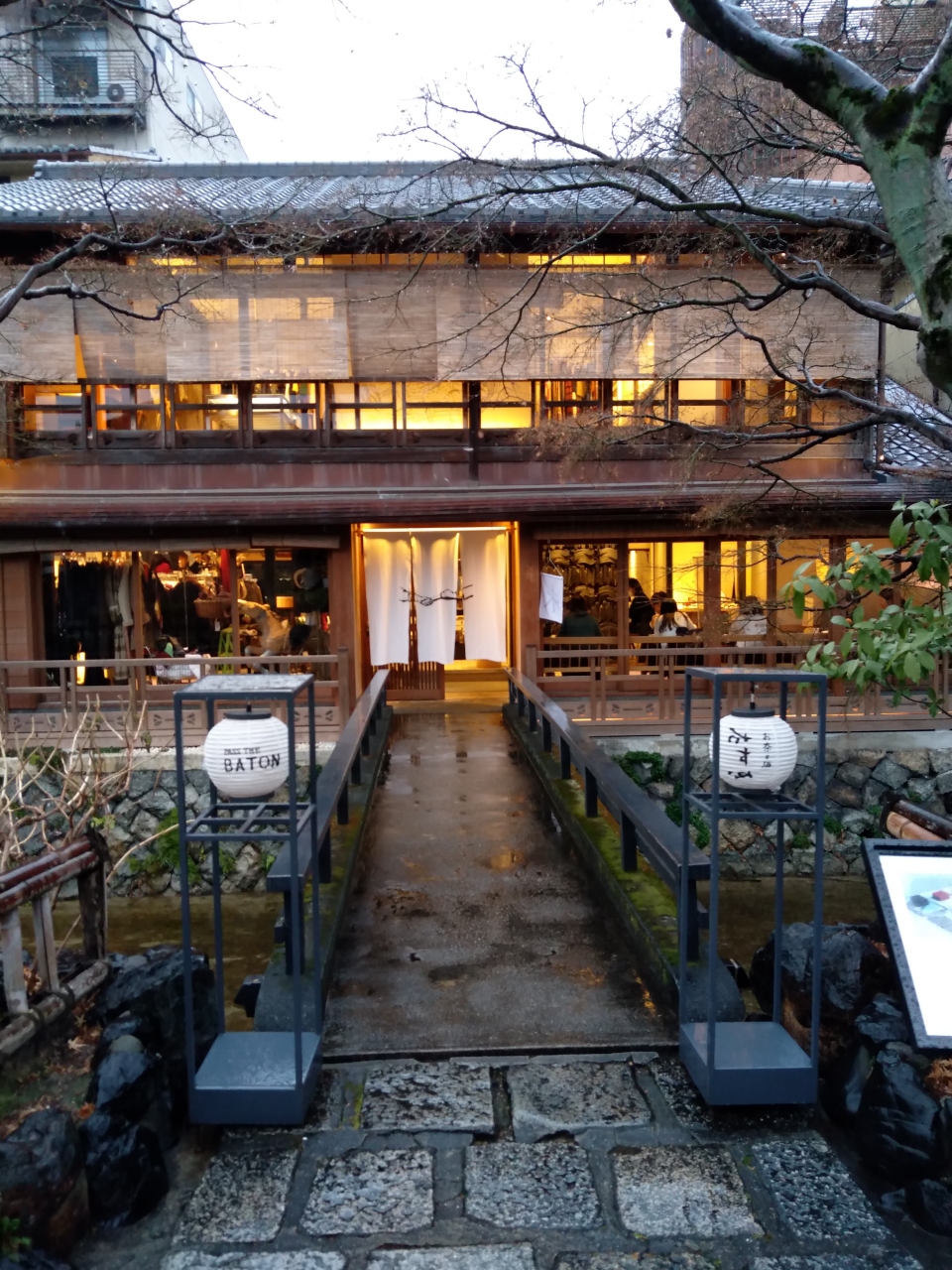 白川と新橋通に面する通りで、川がながれているのですが、幅の狭い川でその片側に風情ある京都らしい木造の建築が並んでいて雰囲気のあるエリア。飲食店が多く、川に橋が架かっていたらしして、アクセスできるようになっている。