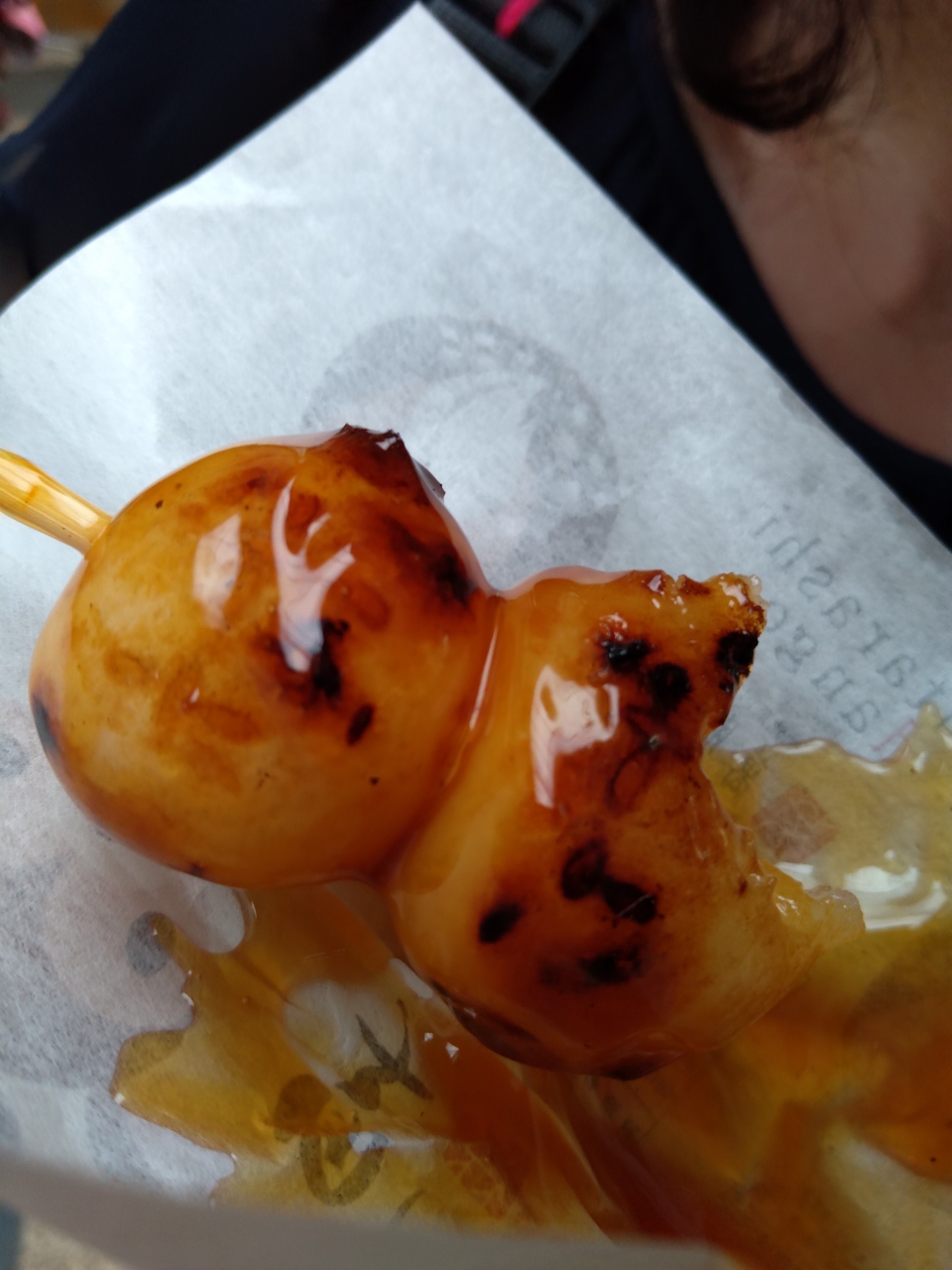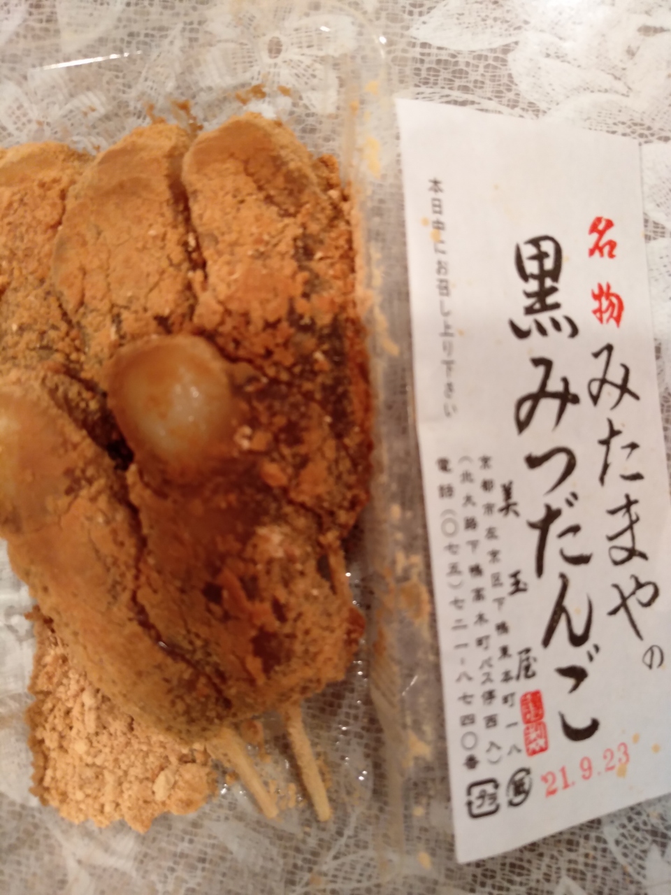 黒みつだんごがなんといってもここのおすすめ看板商品。賞味期限が当日中という和菓子なので自分や家族のお土産ぐらいにしか向かないですが、おいしい。だいたい1本100円という価格。でも1本がこぶりなので、本数もっと食べれる感じ。黄な粉がたっぷりかかっています。